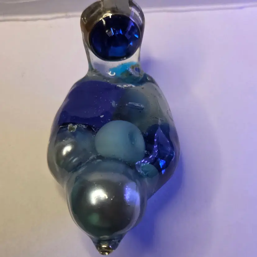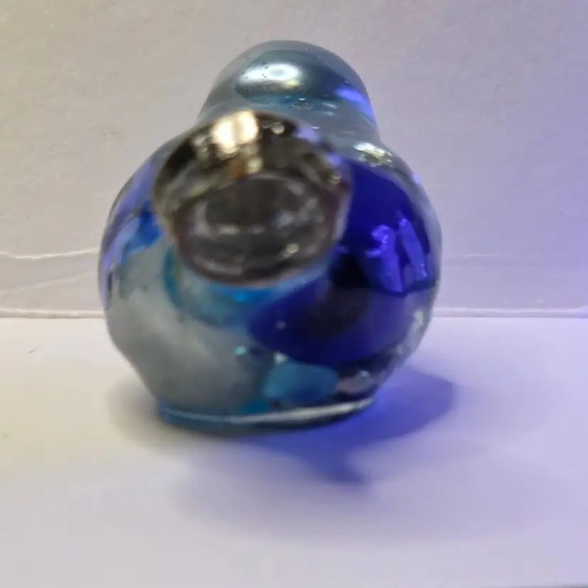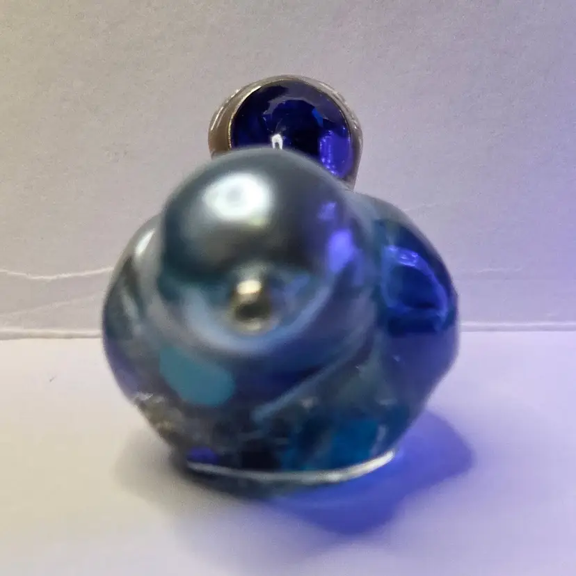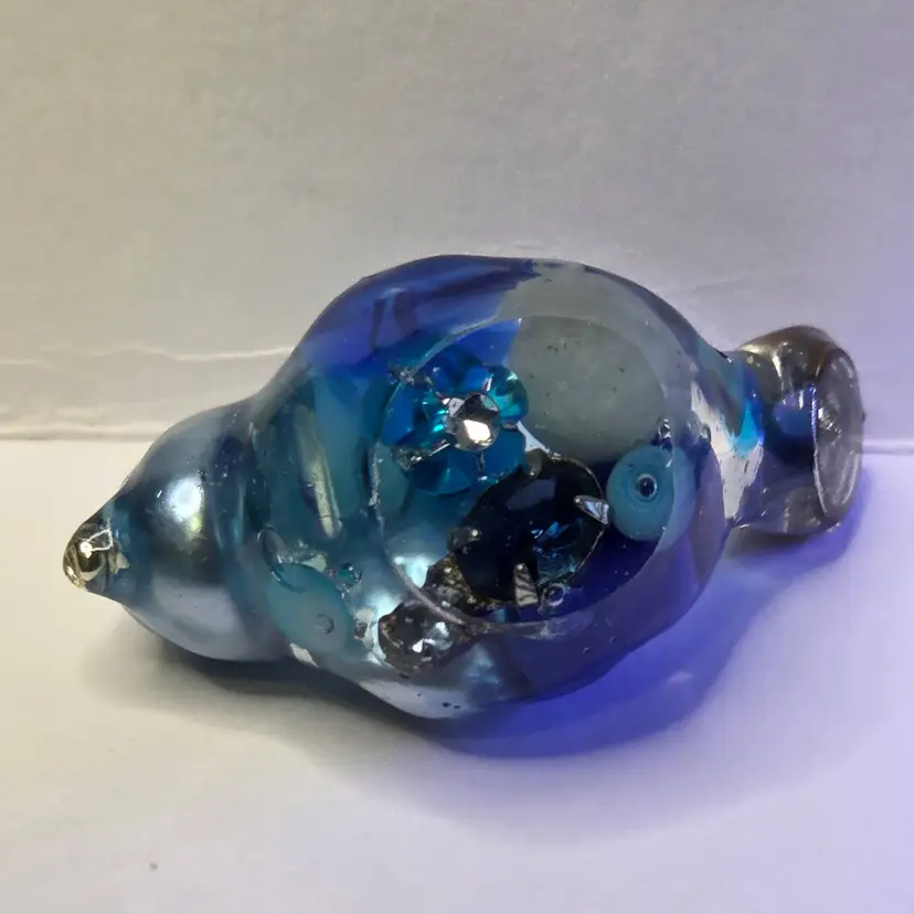 These tiny little birds are handmade from UV resin and bits of baubles and bling from my craft jewelry pile or whatever else I can throw in. No two are alike.