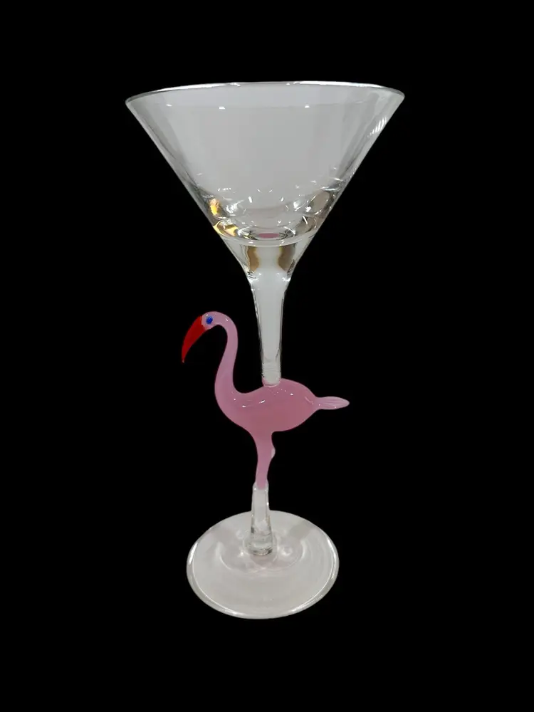 This listing is for an absolutely stunning, hand blown pink flamingo martini glass. This piece is in great condition with no nicks, chips, or cracks. Beautiful art glass piece that is perfect for the collector! It measures 8 7/8 inches tall.