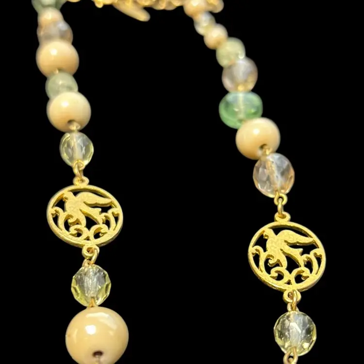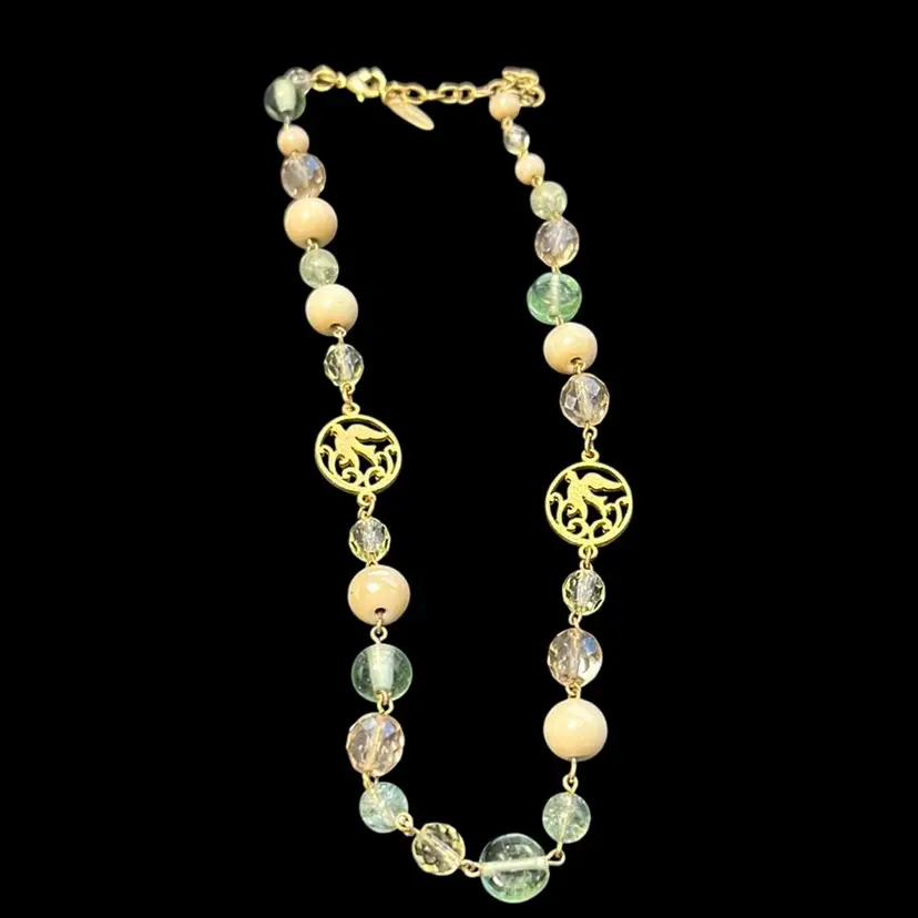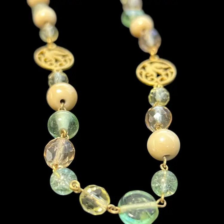 Single Strand Glass And Stone Vintage Necklace With Lobster Claw Fastener 16” But Adjustable