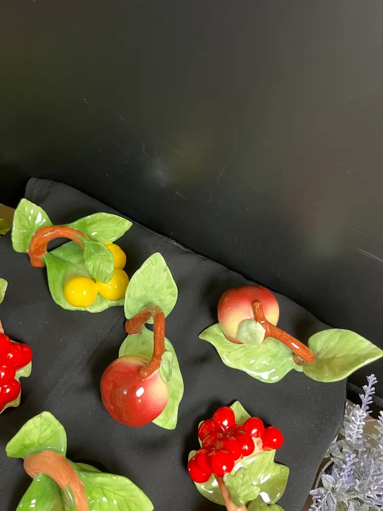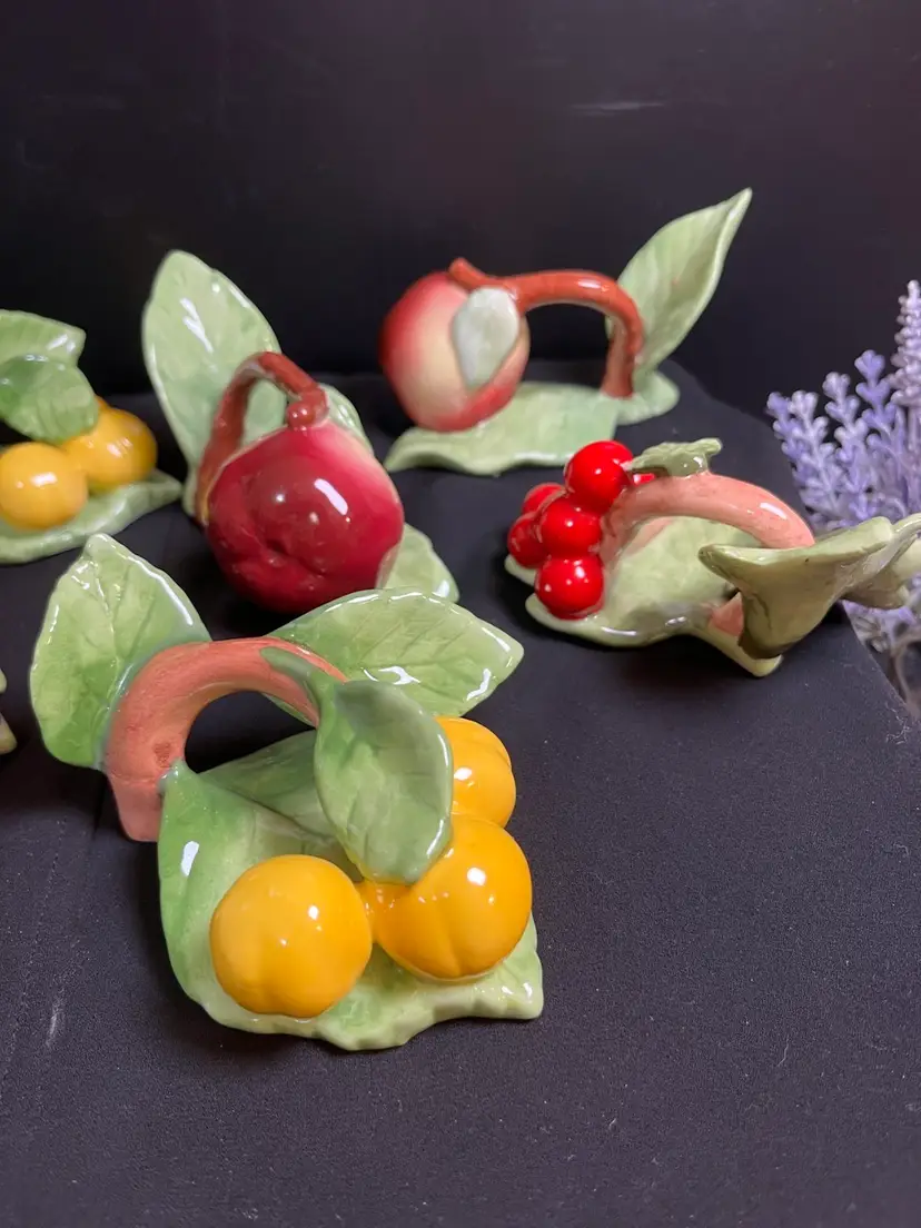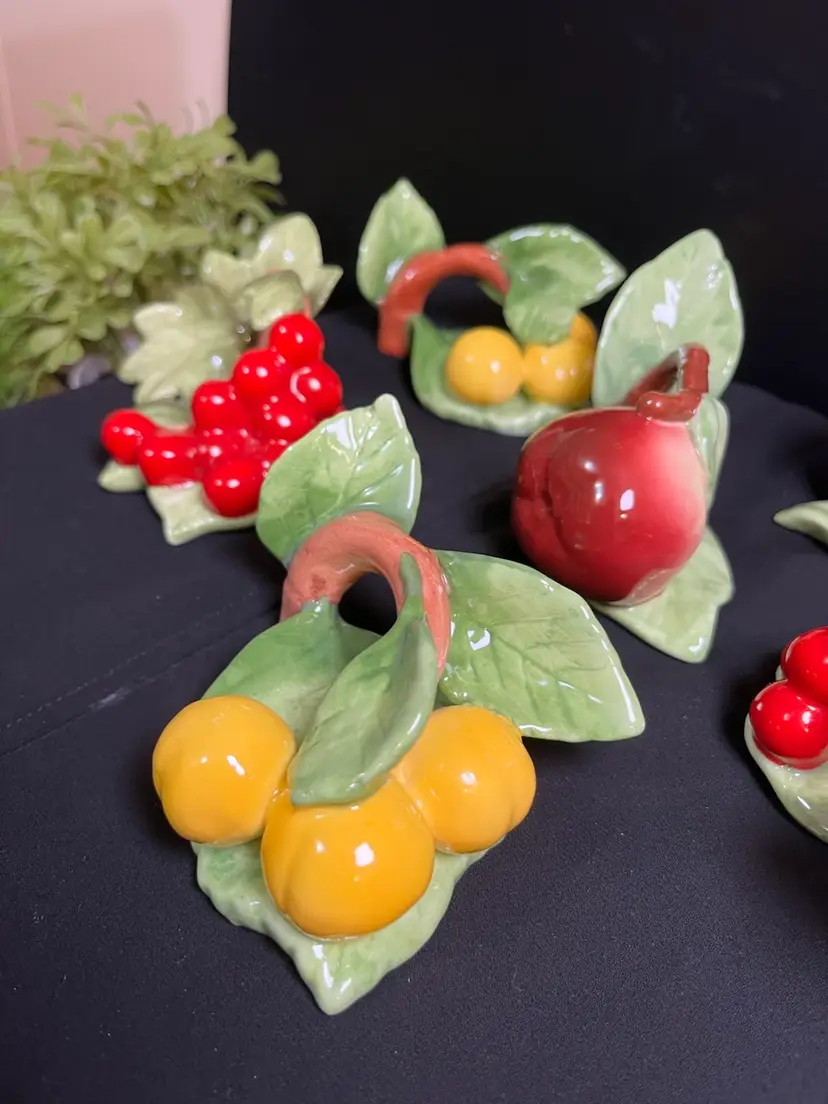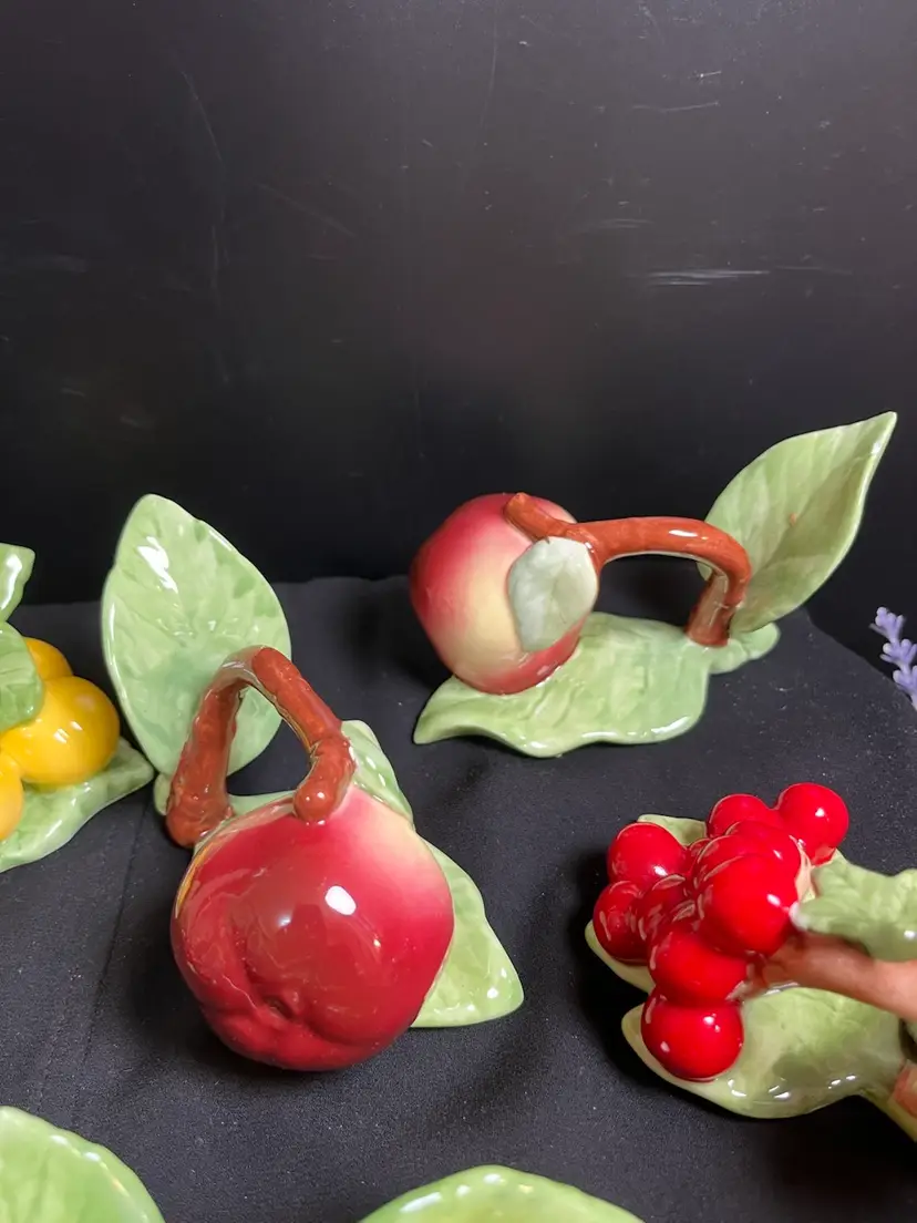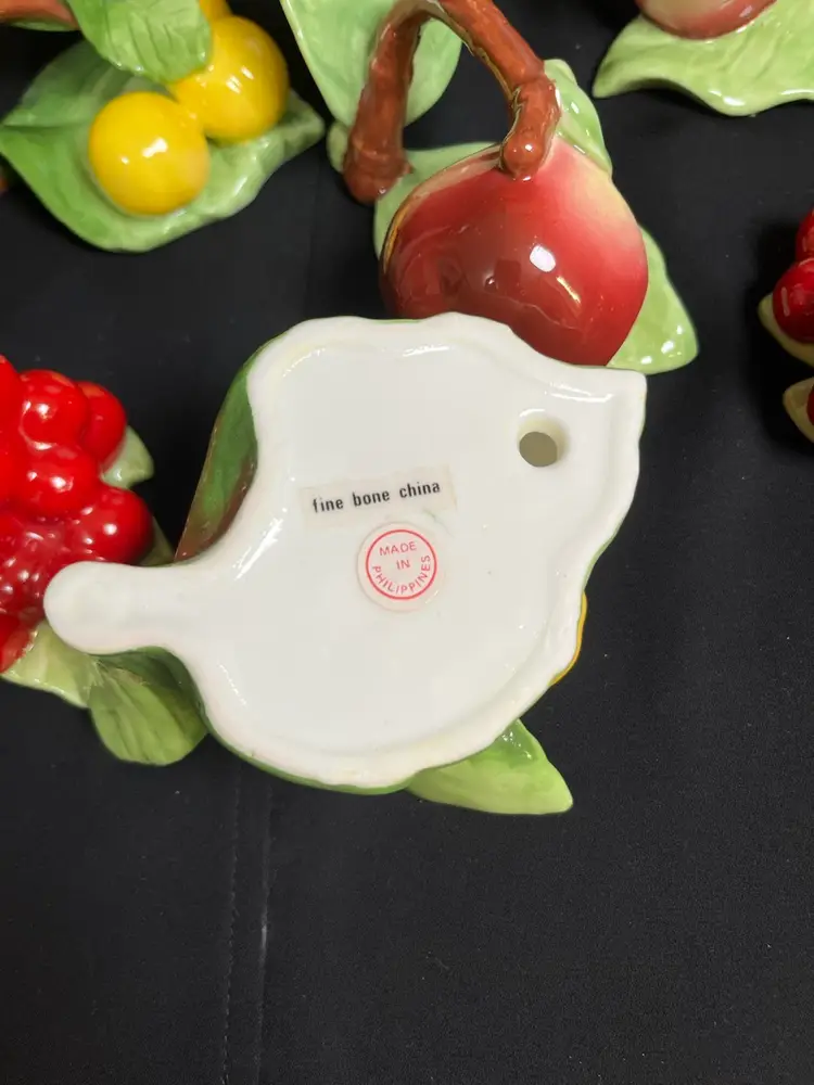 Made in the Philippines. 2 of each fruit. These are in like new condition. No chips or cracks. Use them in vignettes!! Each measures approx 2.5"H, 4.5"L, Together they weigh pre shipping approx 24 Oz