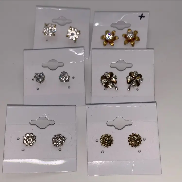 Six Pairs of Stud Earrings Pierced Plus Jacket (9)