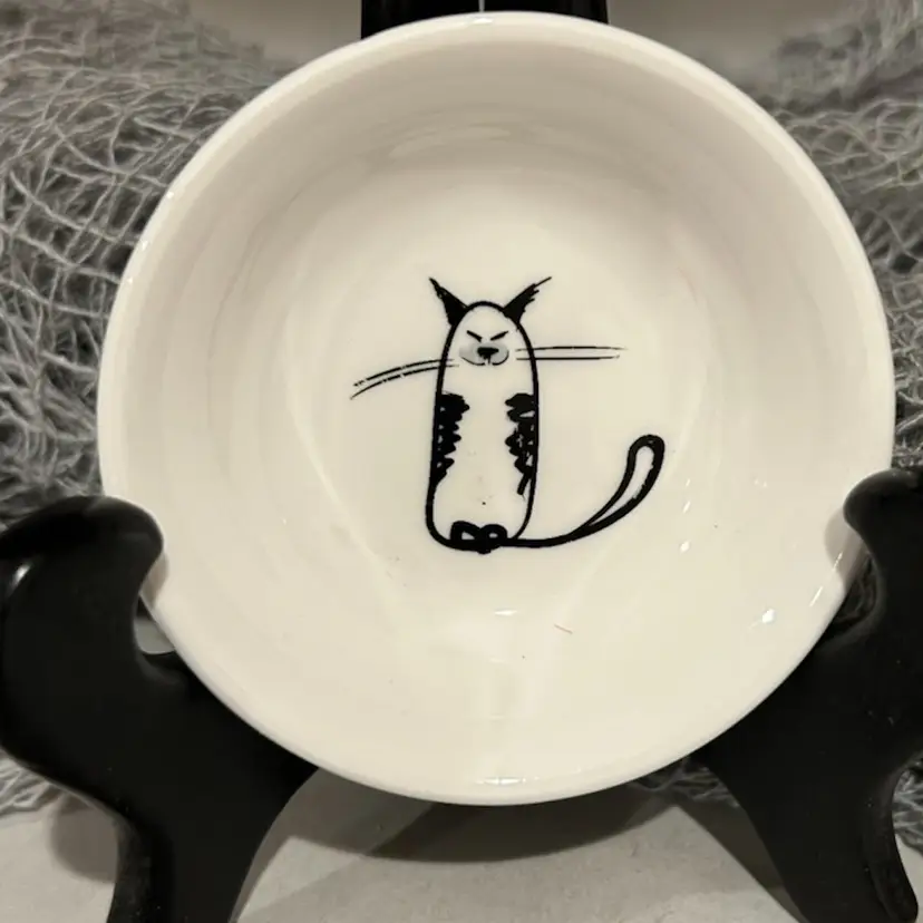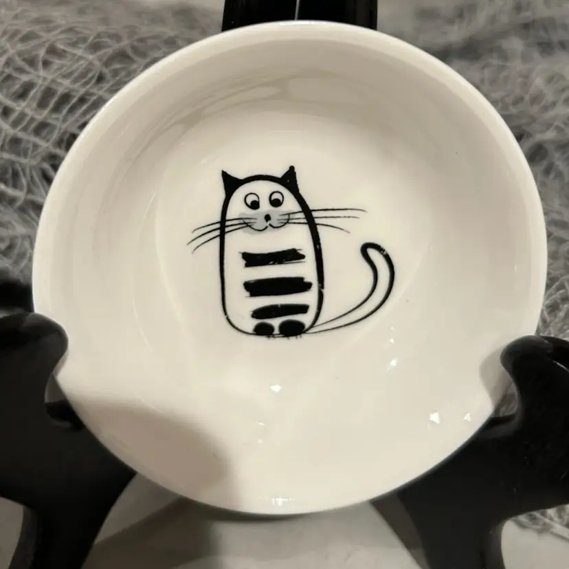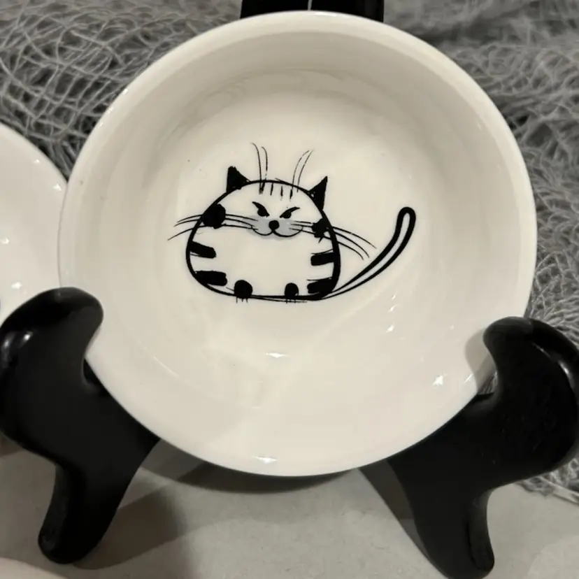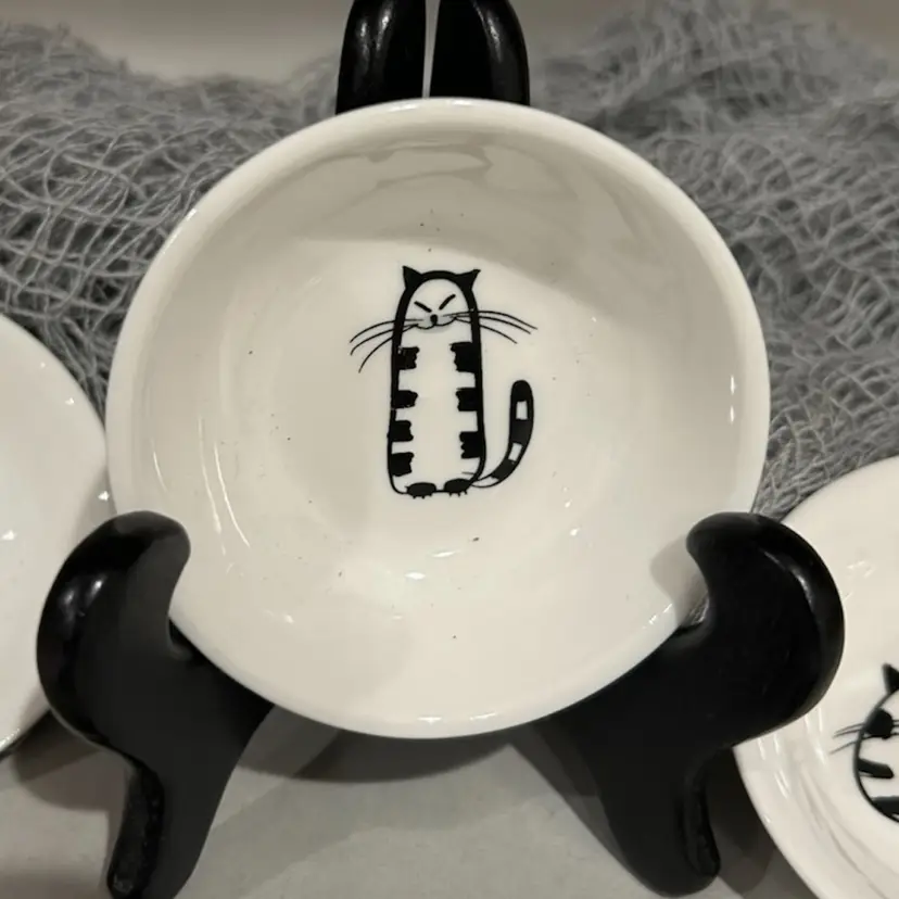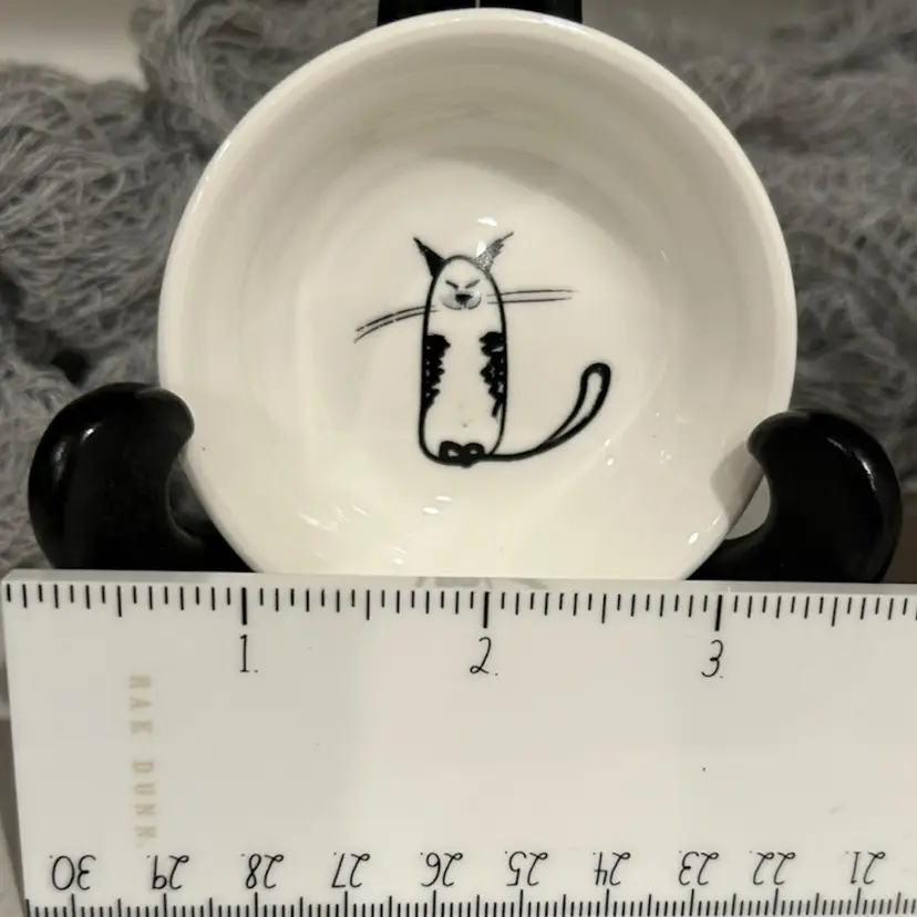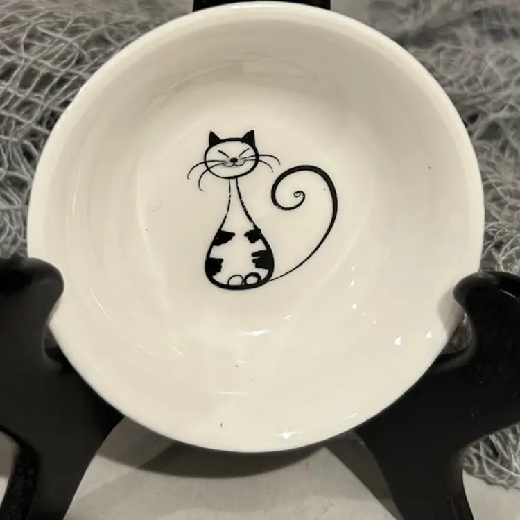 Perfect for the family of six very very small kitties who need food dishes. Also delightful as a display if you’re like me and love cats but remain allergic enough that you can pet them but can’t really live with them. Holds a very small amount of Meow Mix. Dainty.
