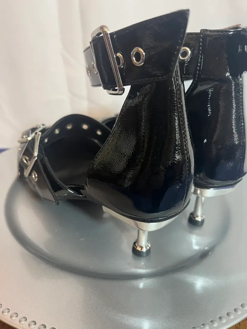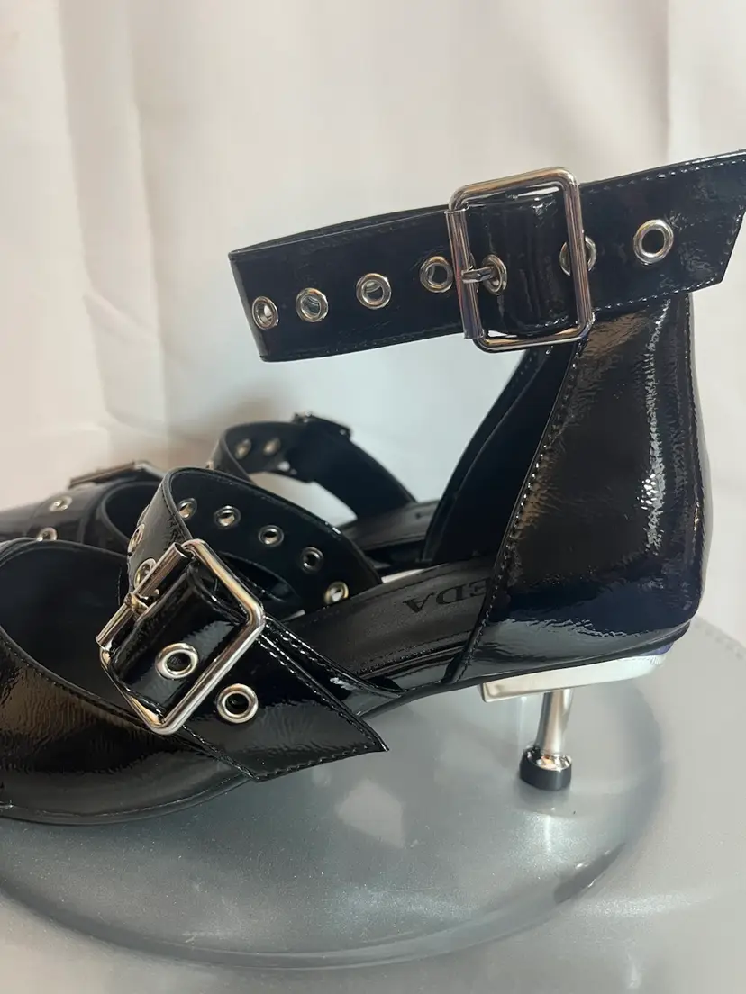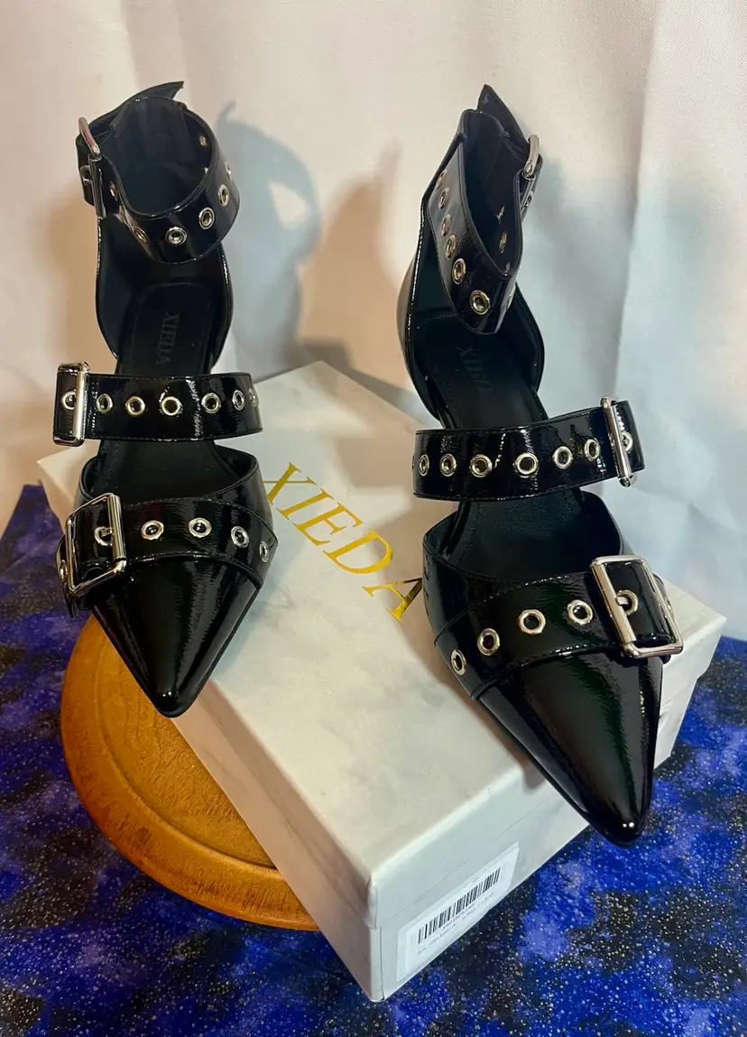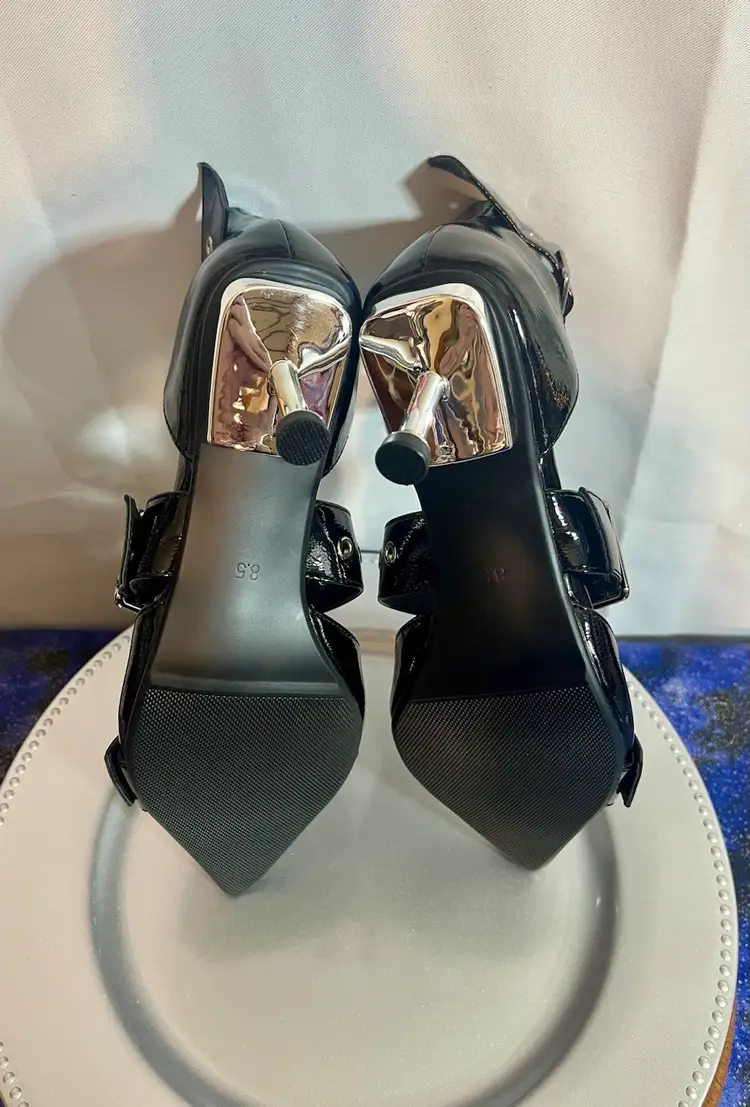 New In Box - individual dust cover for shoes Size 7.5 2 1/2” kitten stud heel Straps with silver hardware Retail new: $39.99