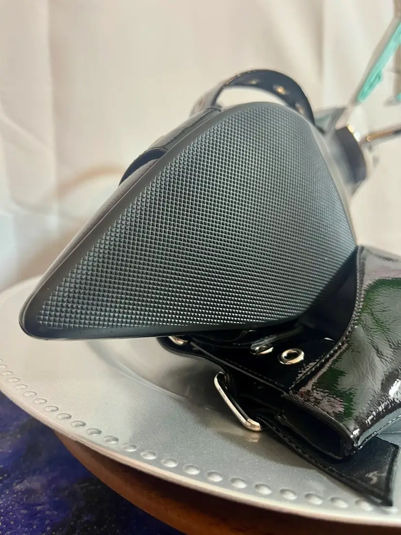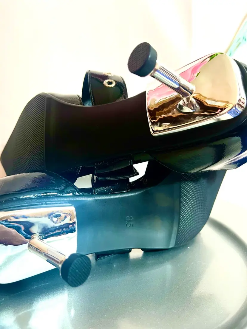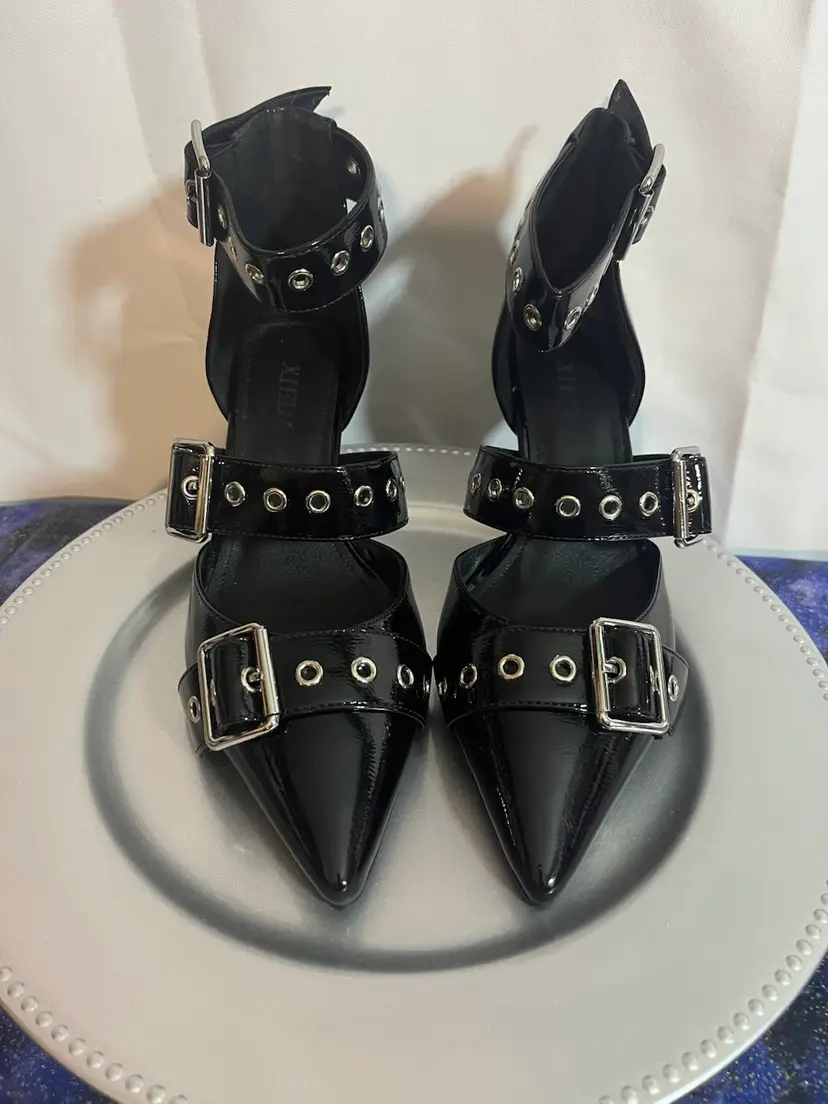 New In Box - individual dust cover for shoes Size 7.5 2 1/2” kitten stud heel Straps with silver hardware Retail new: $39.99