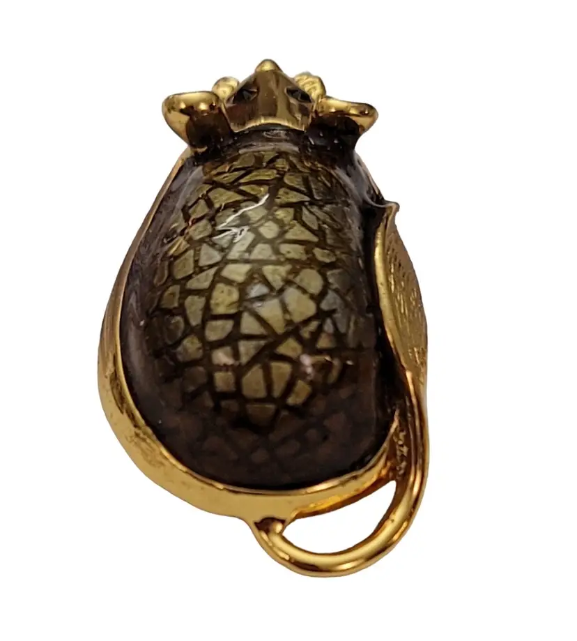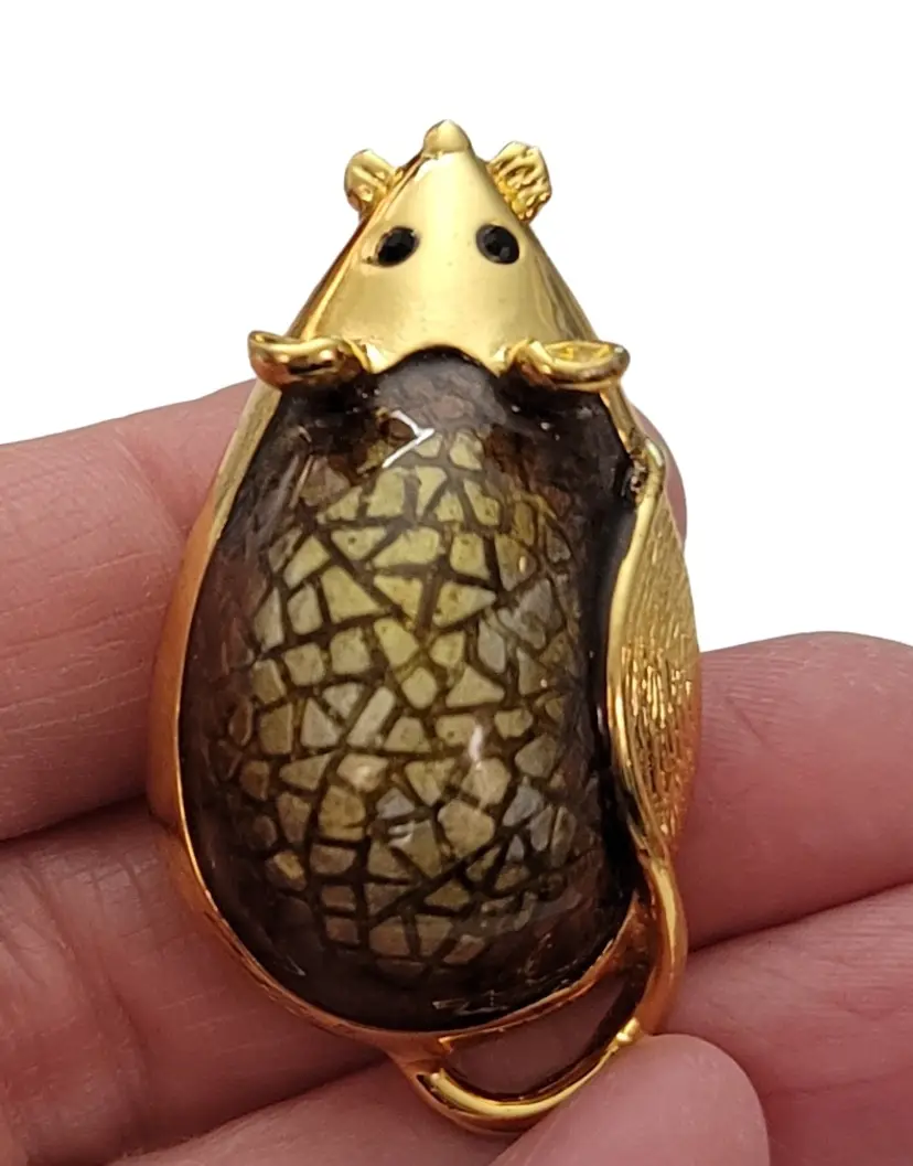 SJ Gold Tone Vintage Green Textured Resin Enamel Mouse Brooch Pin, Signed E630