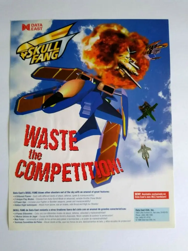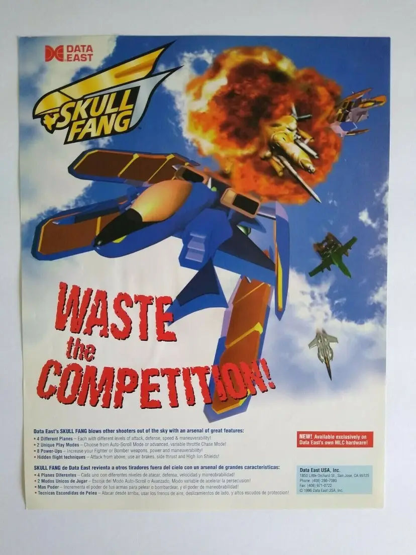 Arcade: Flyer Modified Item: No Country/Region of Manufacture: United States Original/Reproduction: Original Year: 1996 Game Title: Skull Fang Brand: Data East Subject: Air Combat