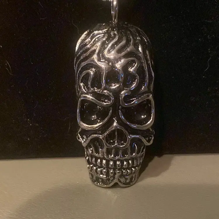 med shipping This is a stainless steel skull and black enamel pendant on a chain