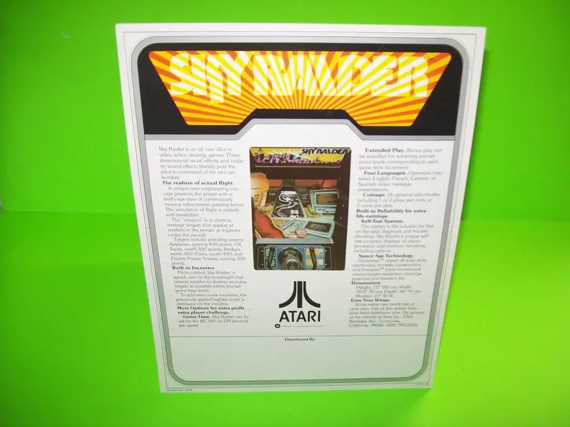 Original Sales Flyer: Coin-op Trade Paper Advertising Modified Item: No Country/Region of Manufacture: United States Original/Reproduction: Original Year: 1978 Game Title: Sky Raider Brand: Atari