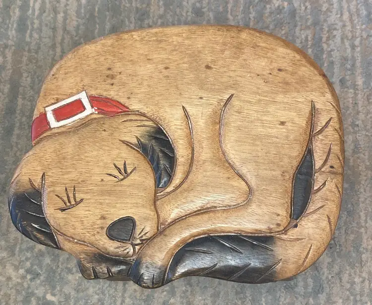 SLEEPING PUPPY WOOD FOOTSTOOL