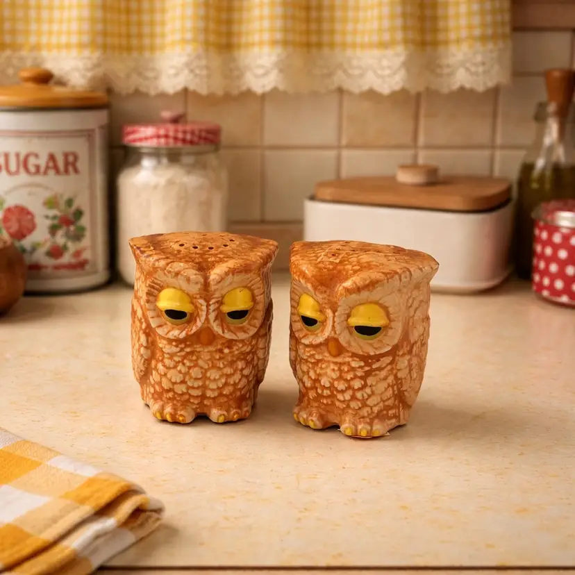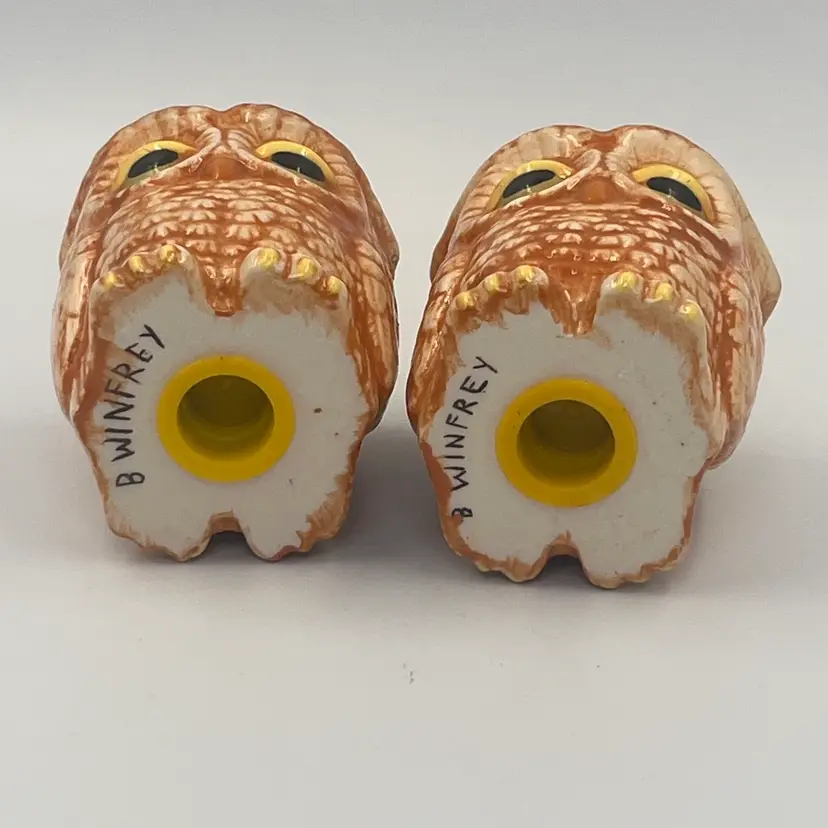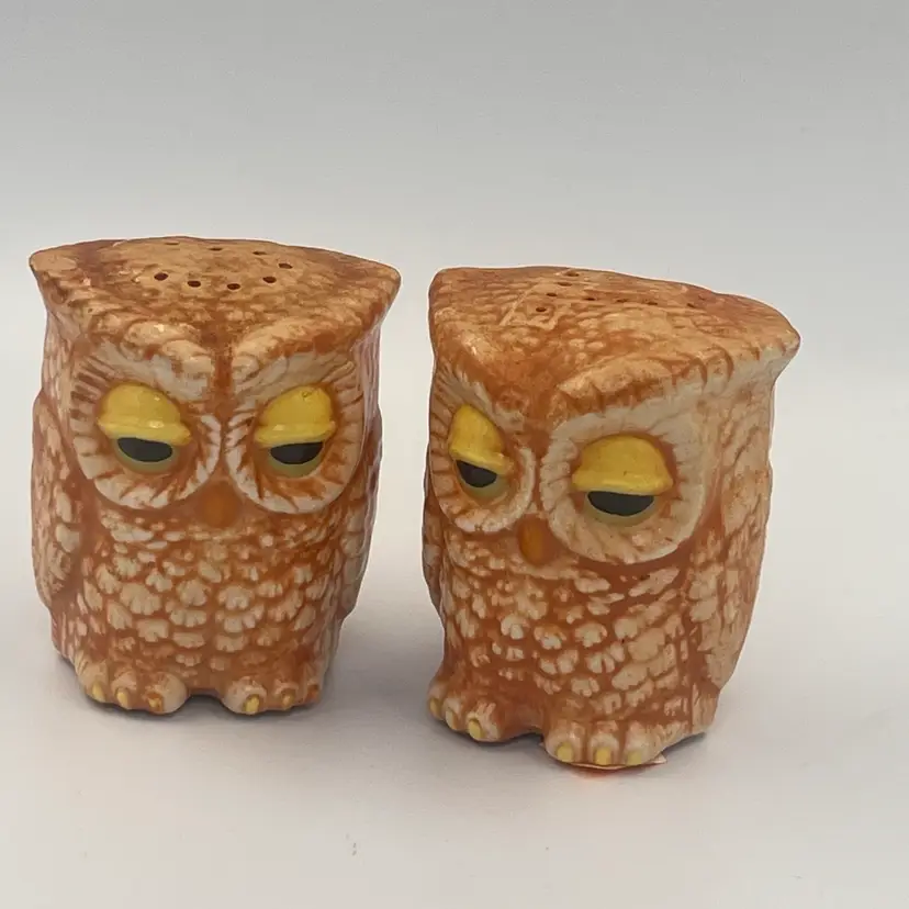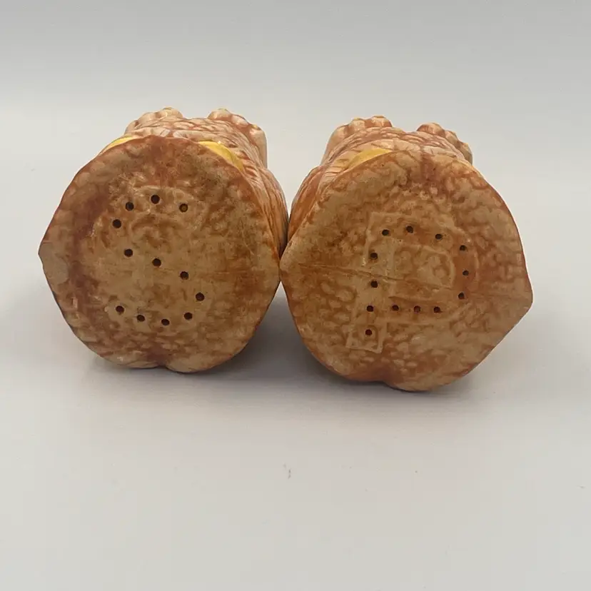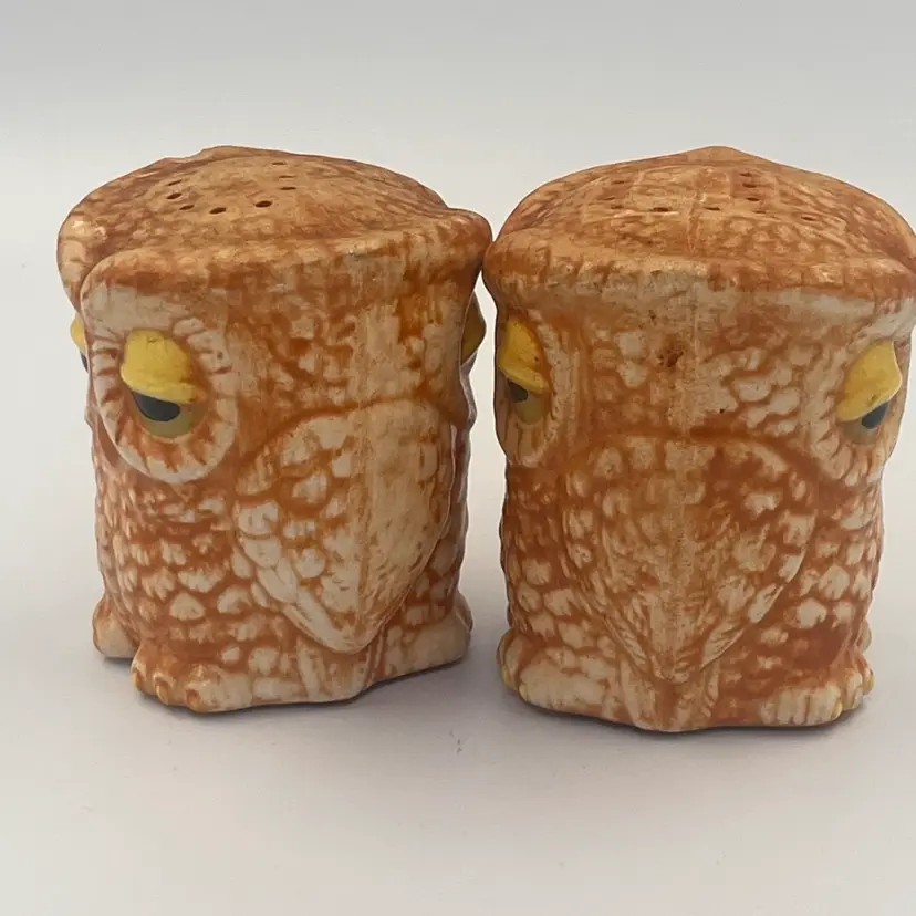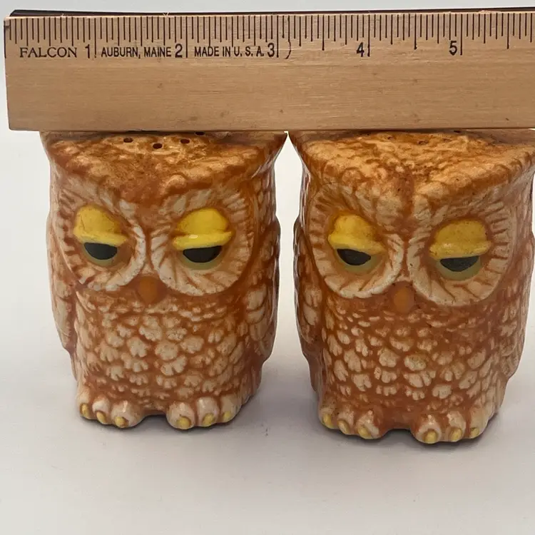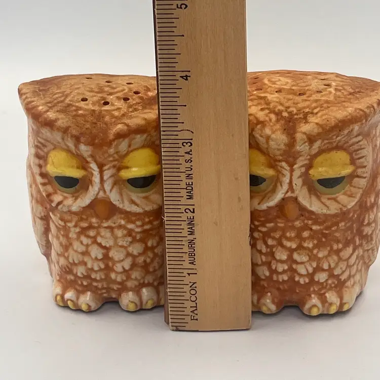 Adorable and a good size for your kitchen Measures:3”x3.5” No chips or cracks both have the stoppers