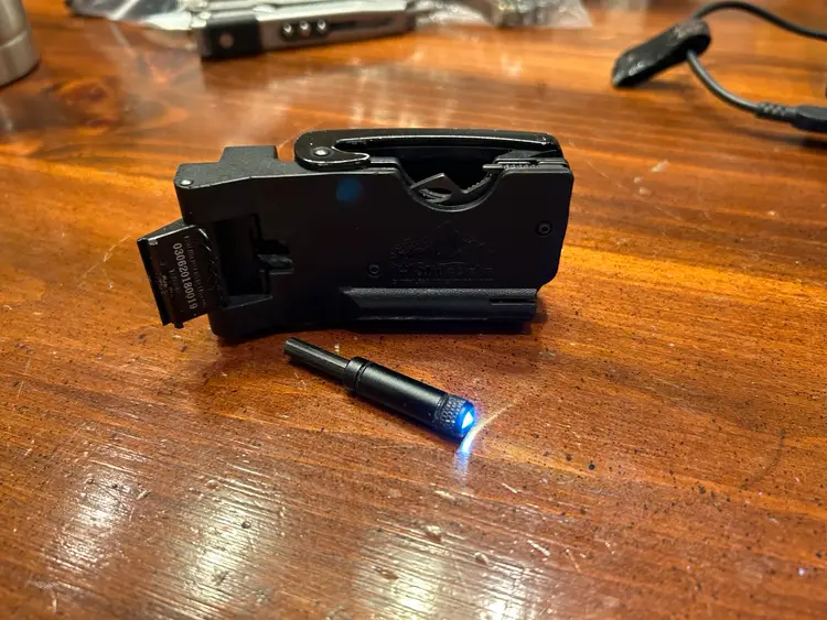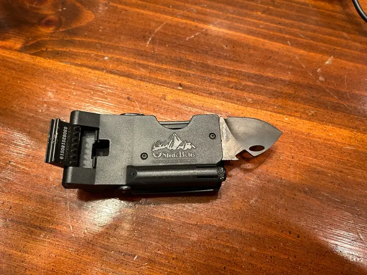 Buckle only from Slidebelts survival belt 2.0. Has knife, bottle opener, and flashlight. Black. TSA Confiscated. Slight visible wear. GREAT FOR EDC