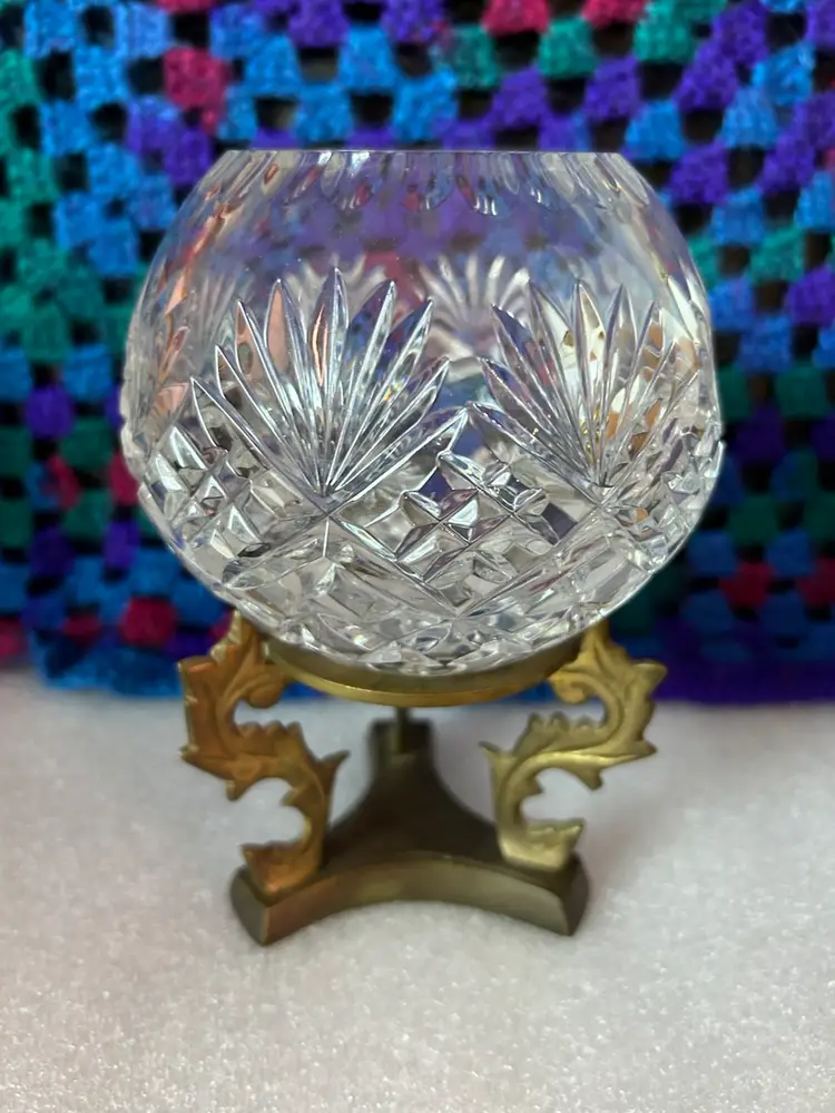 Beautiful crystal and brass piece 7” tall Bowl 4” tall Stand 3” tall No chips or cracks