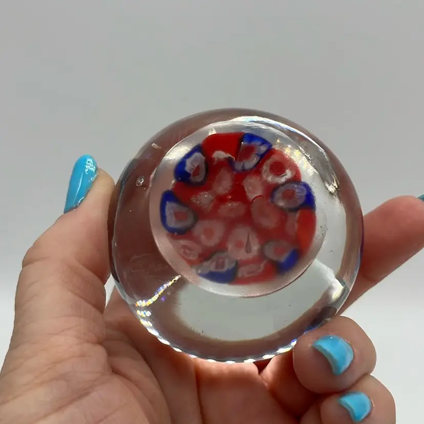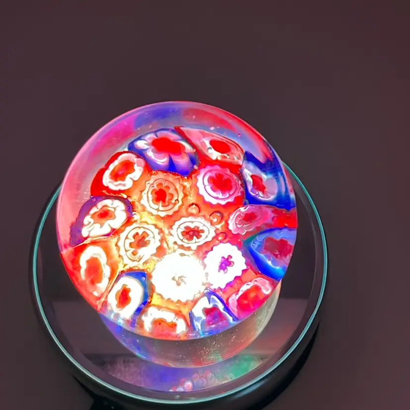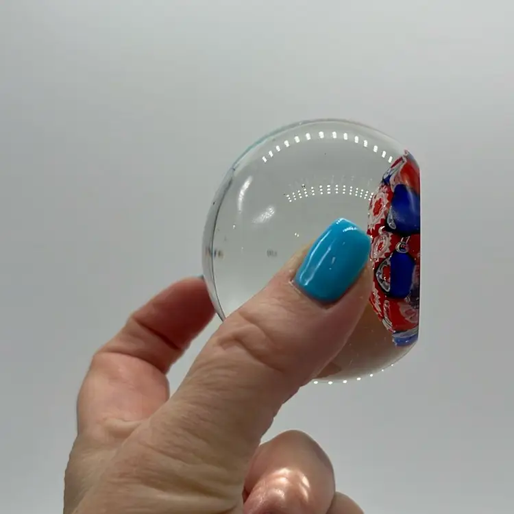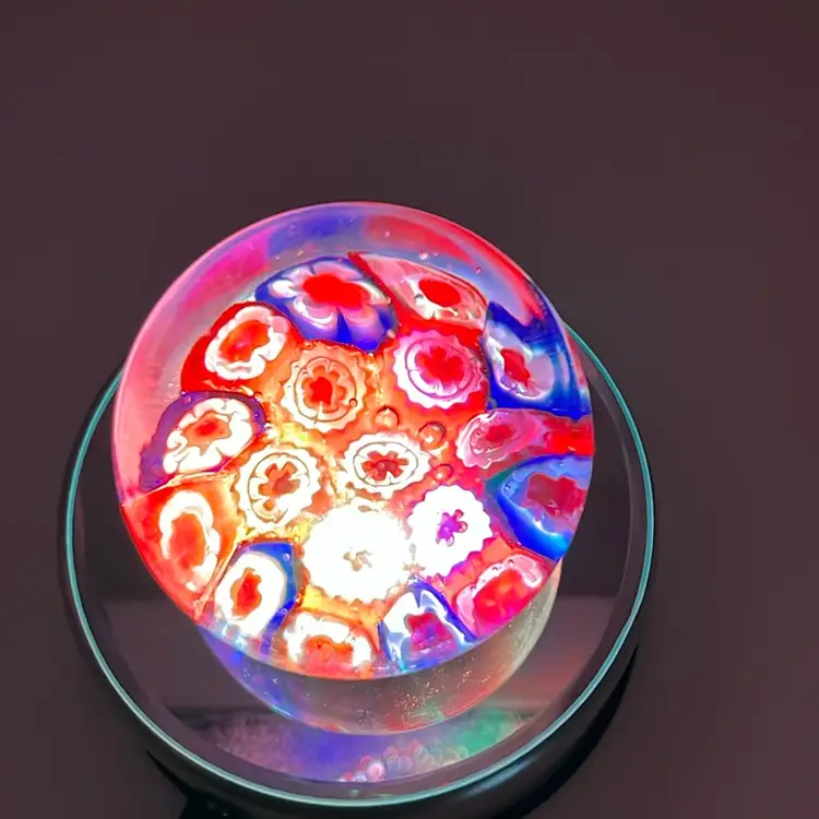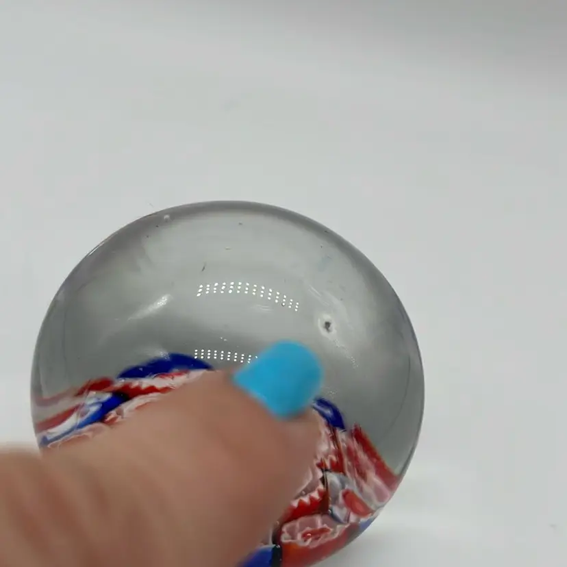 This little beauty shows beautiful detail and is even more pretty on a multi color light. Does show some wear. (See pics for all details, also flea bites and wear) Smooth unpolished bottom. No cracks. Approx: 2.25” d