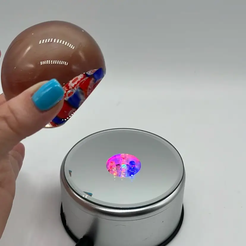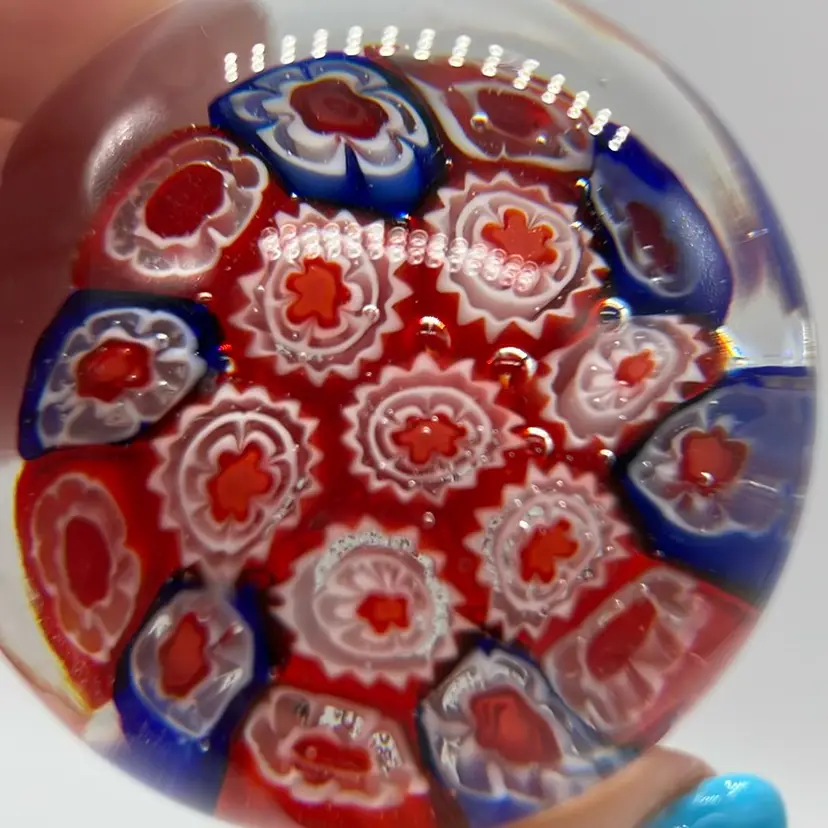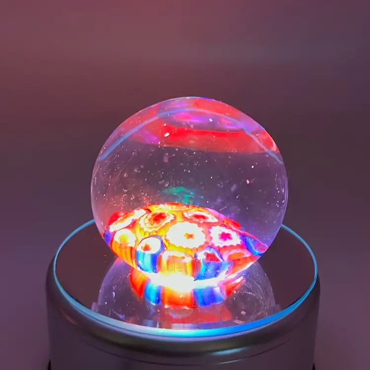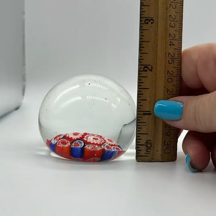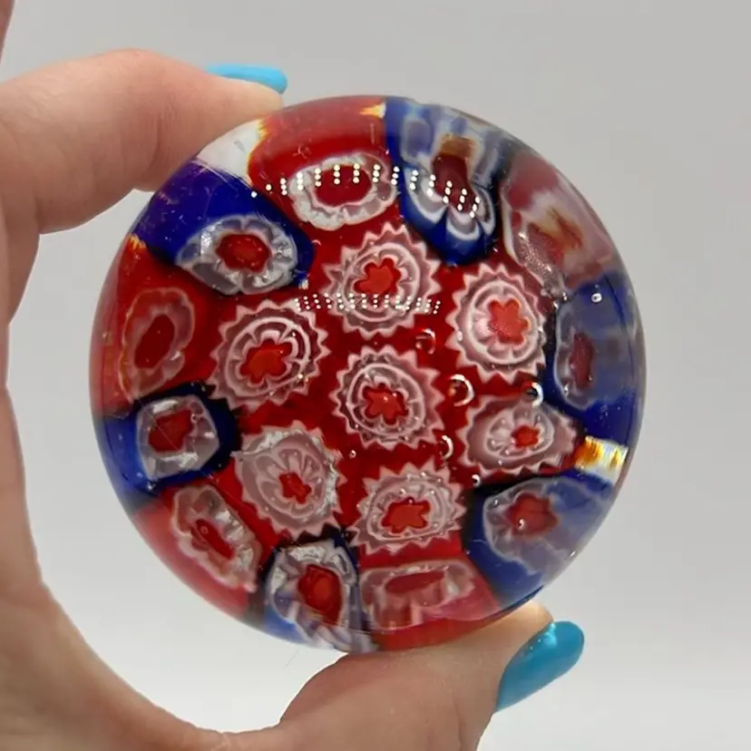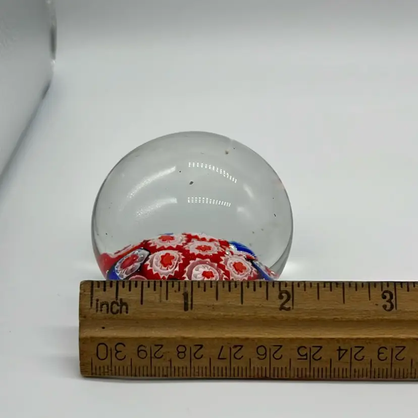 This little beauty shows beautiful detail and is even more pretty on a multi color light. Does show some wear. (See pics for all details, also flea bites and wear) Smooth unpolished bottom. No cracks. Approx: 2.25” d