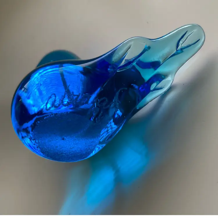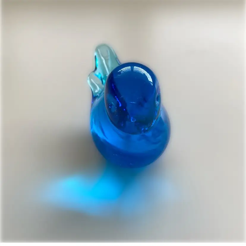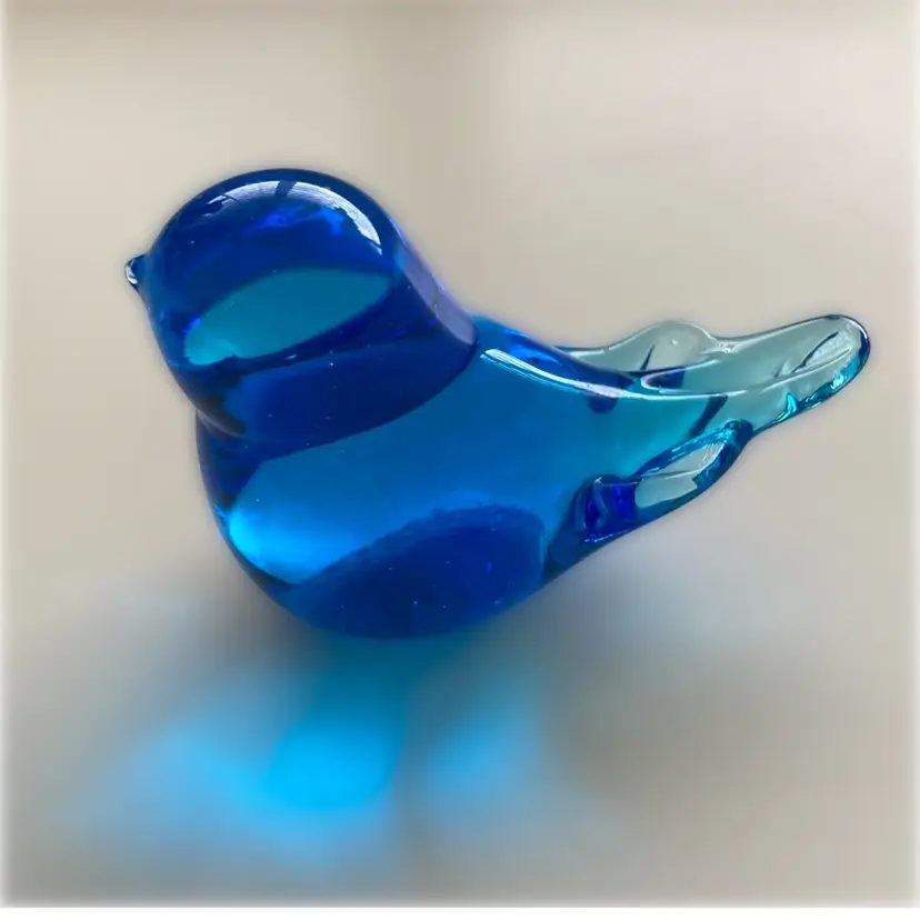 Small bluebird of Happiness. It is signed but I cannot read it. Terra Studios had over 200 glass artists work fir tgem. The bird measures 1” x 2 1/2”x 1 7/8” tall. In good condition.