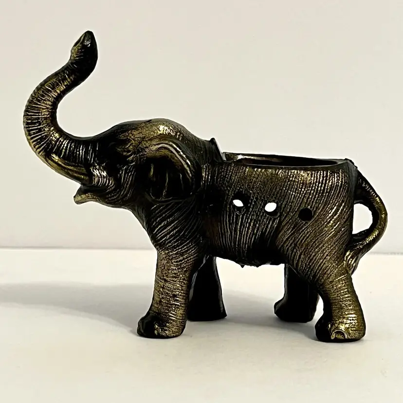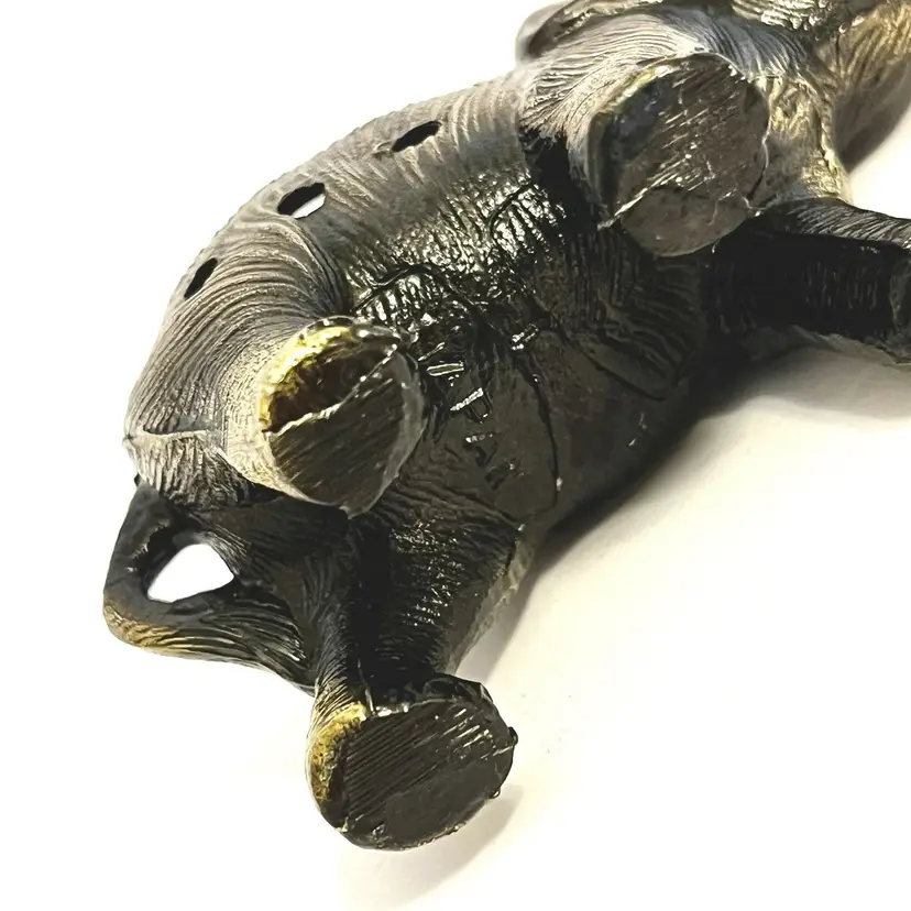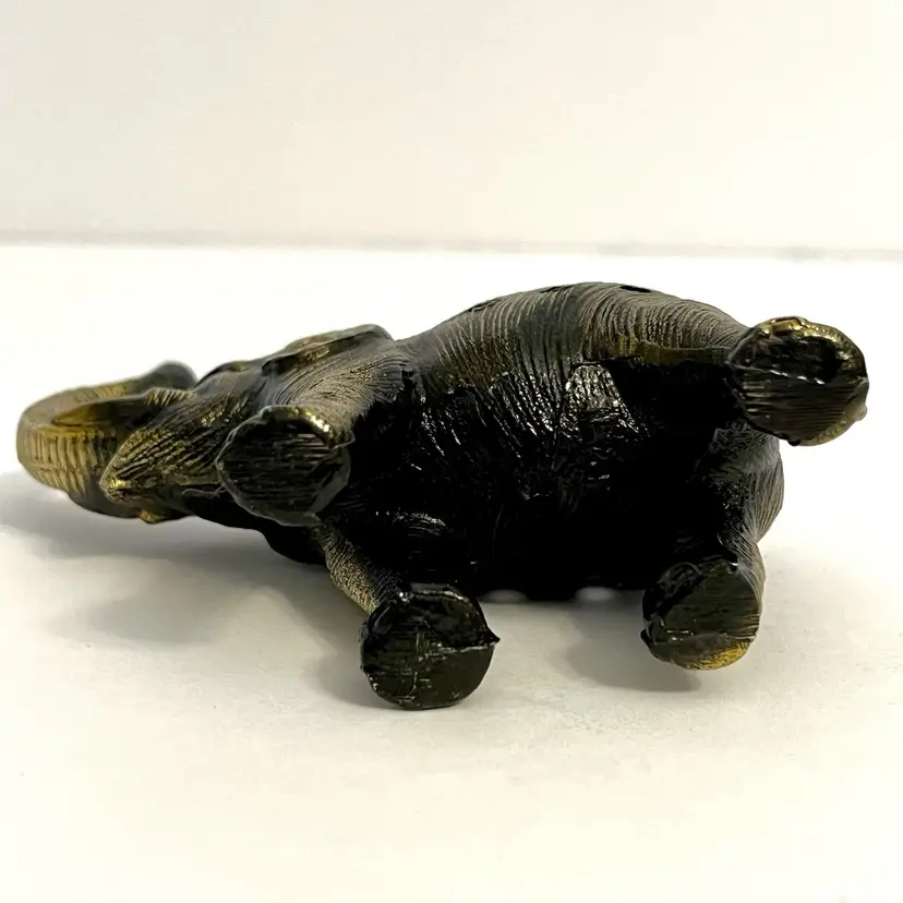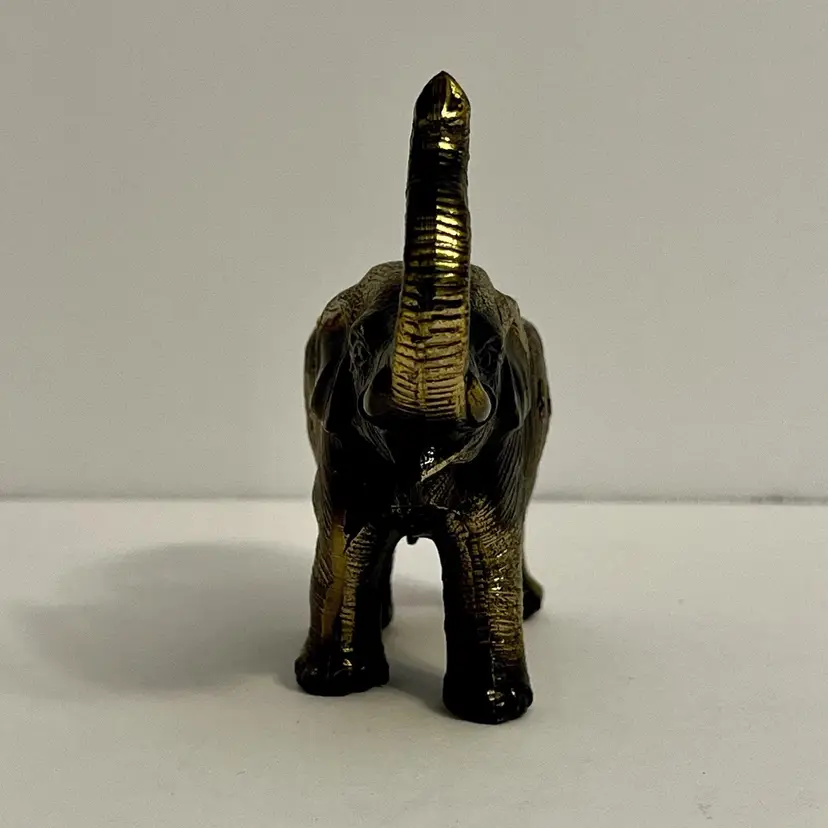 Solid brass miniature elephant figurine, made in Japan. Hollow figurine with opening on top.