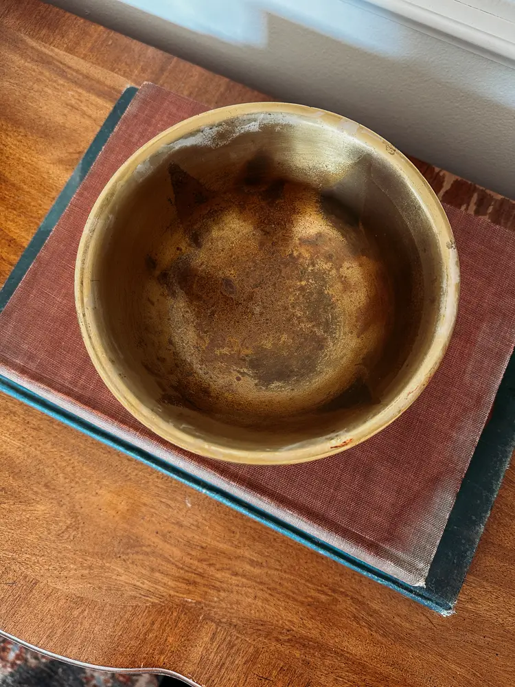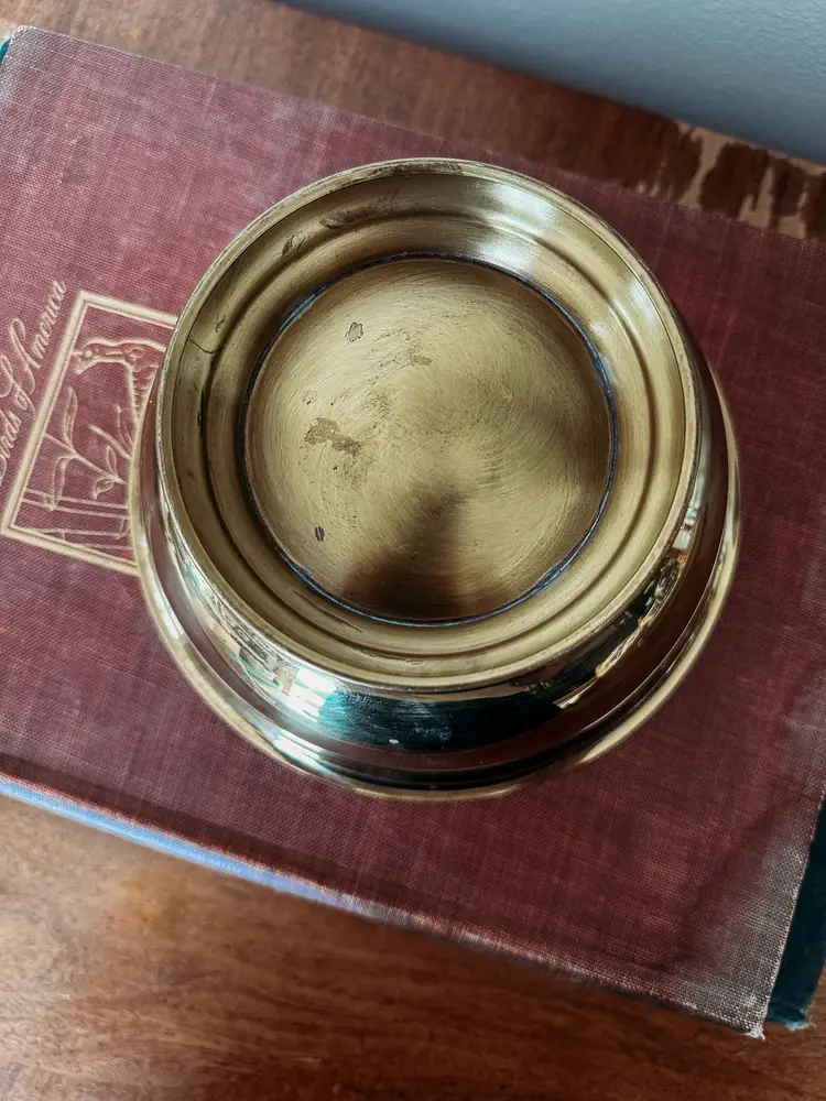 Measures 7.25x3.75" Would look lovely all year round, but especially styled for Fall and Winter! No markings to identify it. Shows patina and tarnish but overall, a beautiful accent piece!