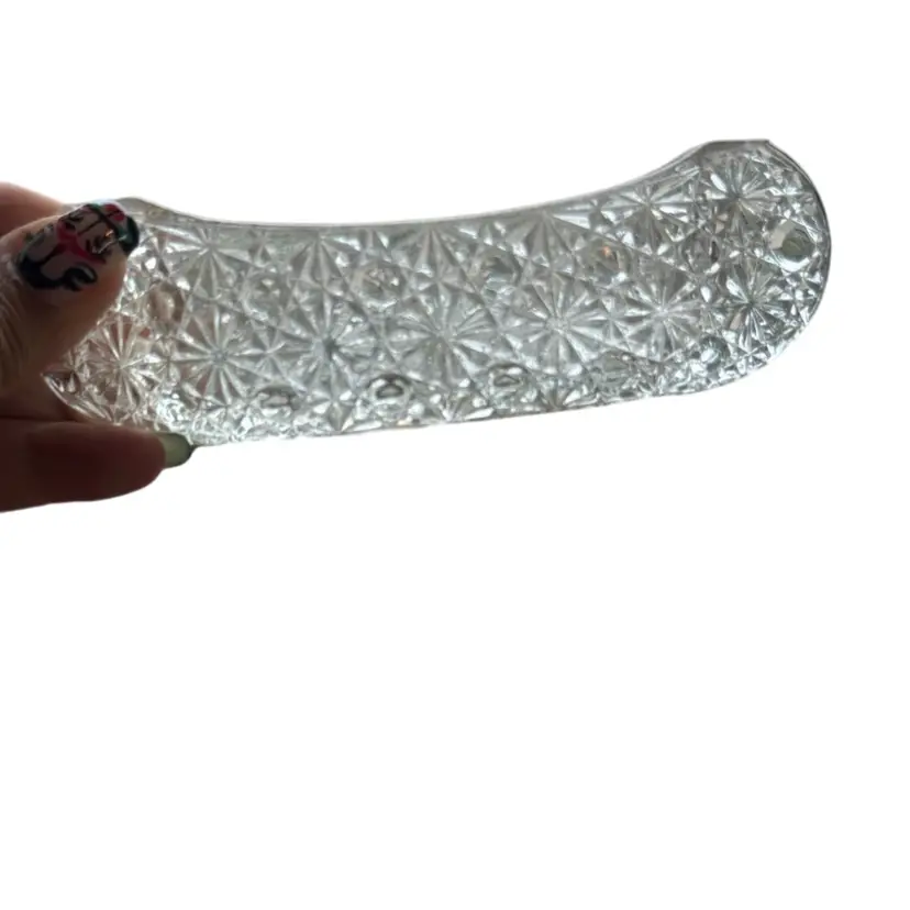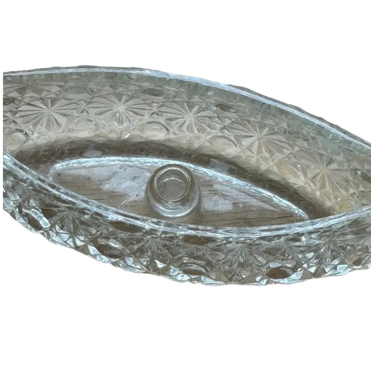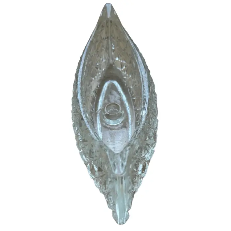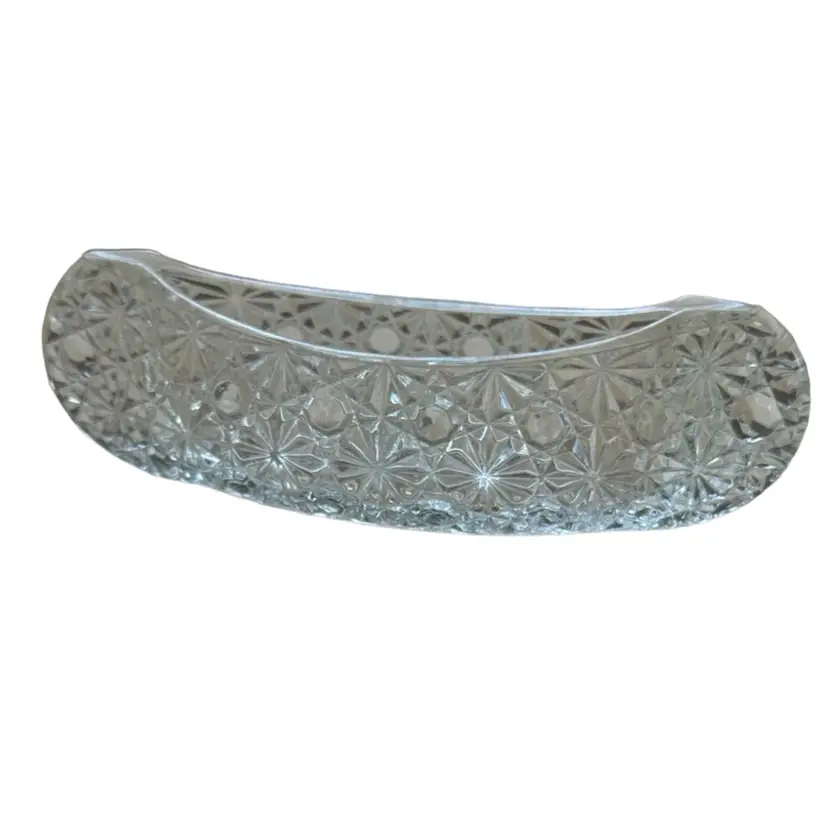 Small Canoe Shape Candleholder daisies, and buttons By Smith Glass 6 inches long by 2 inches tall