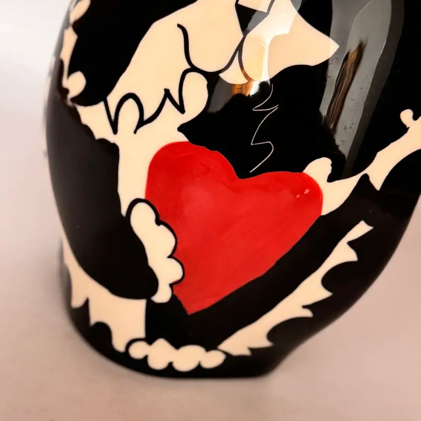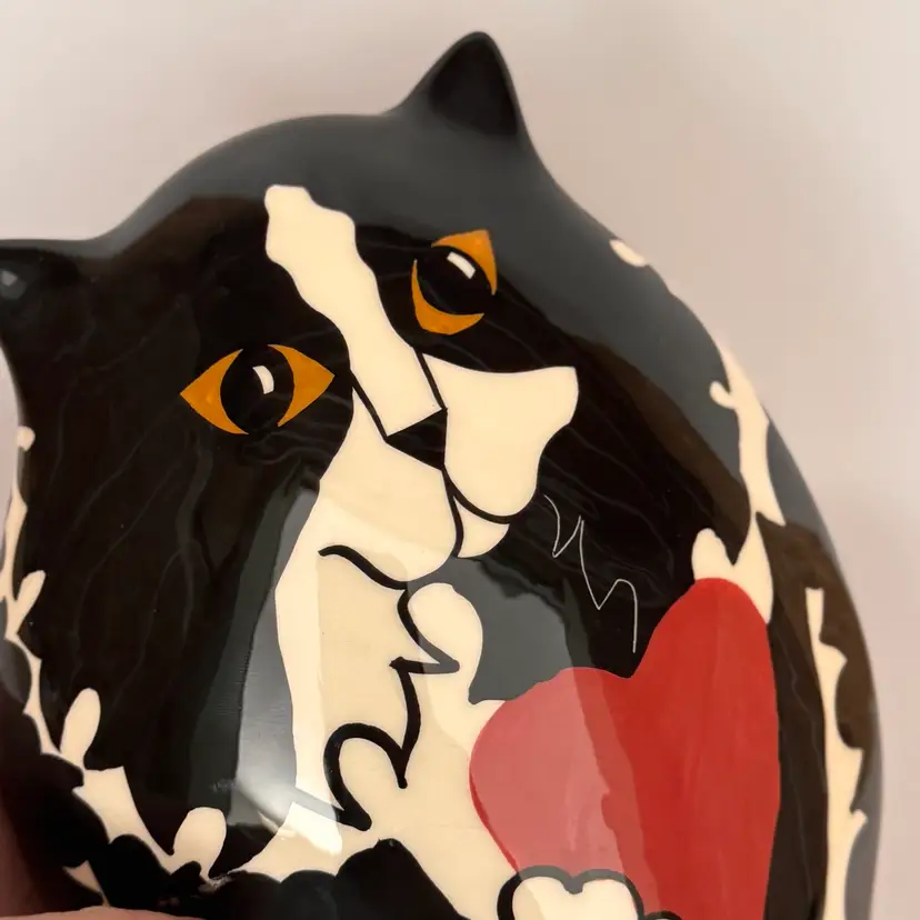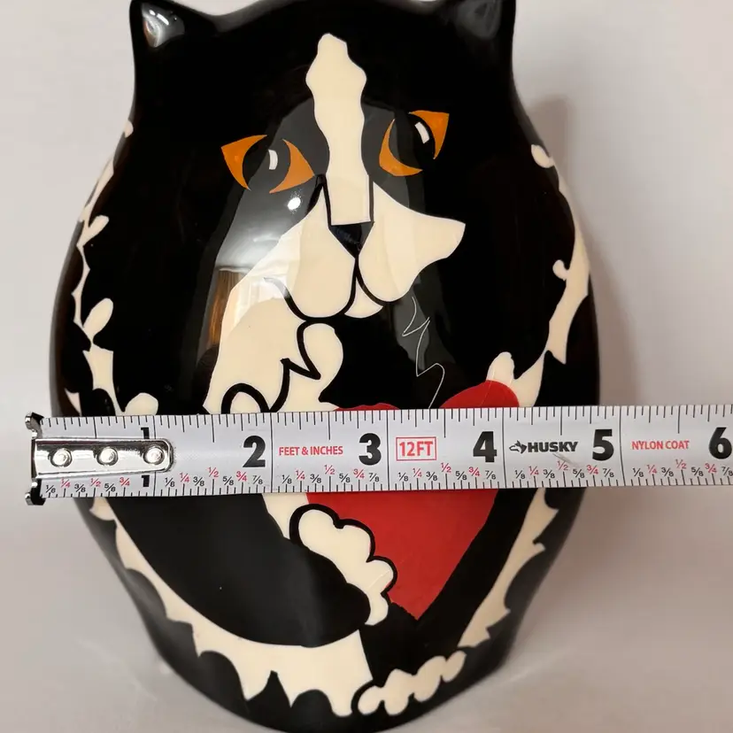 No chips or cracks. A bit of crazing when looked at in the right light. Approximately 6 1/2 inches tall and 5 inches wide.