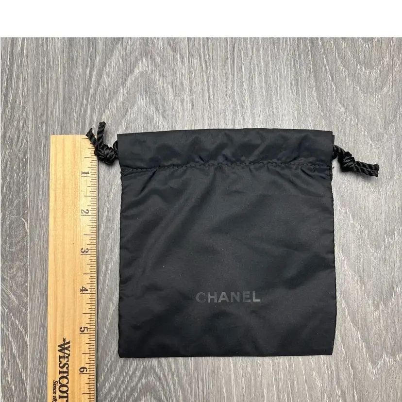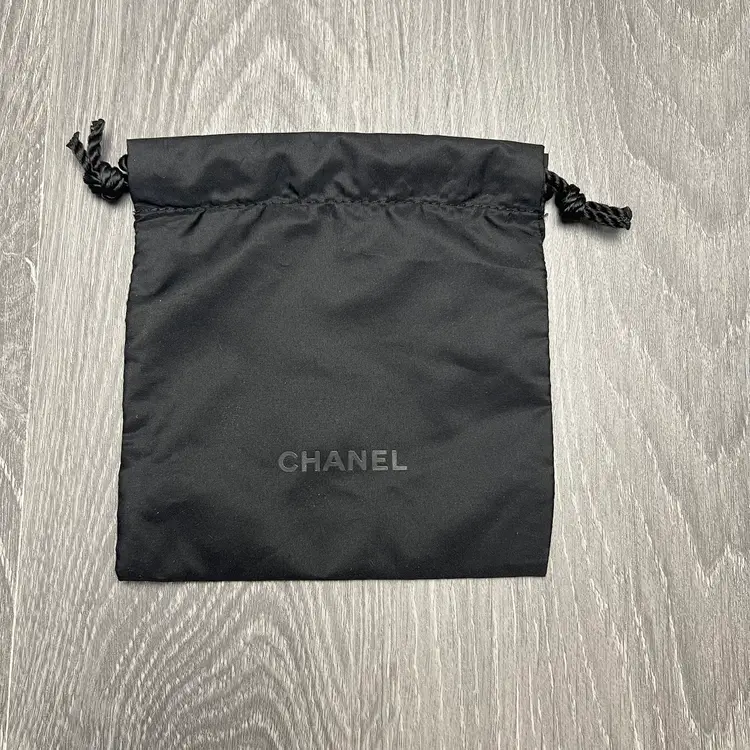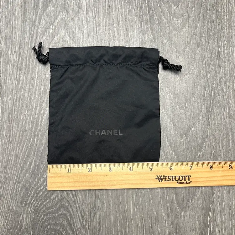 Small Chanel bag with drawstring in black. No tags and unused. Measurements are in the photos. Thank you!