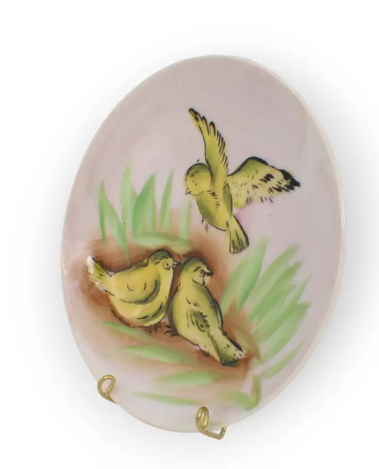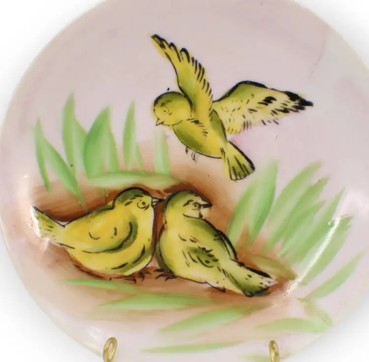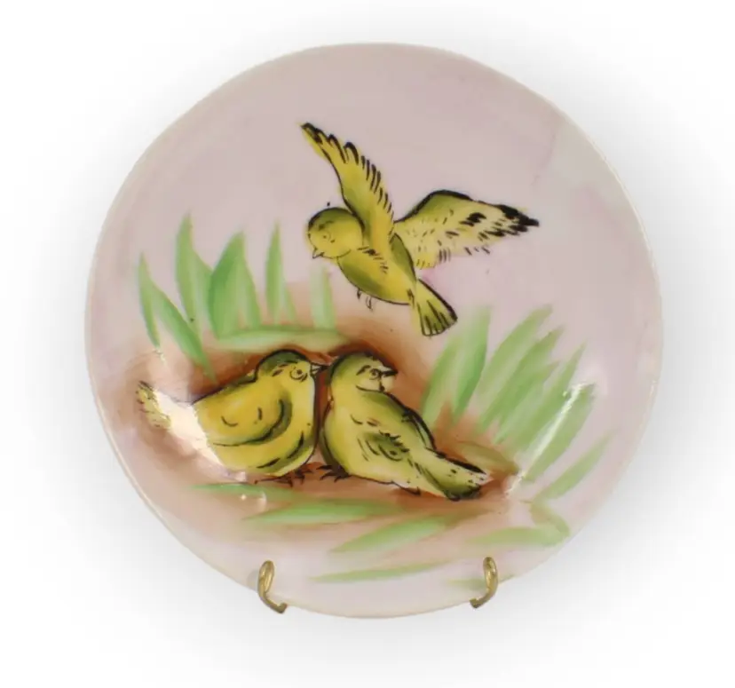A Very Pretty Small Hand Painted Plate With Three Cute Yellow Birds In The Grass. Measures 5" Diameter.