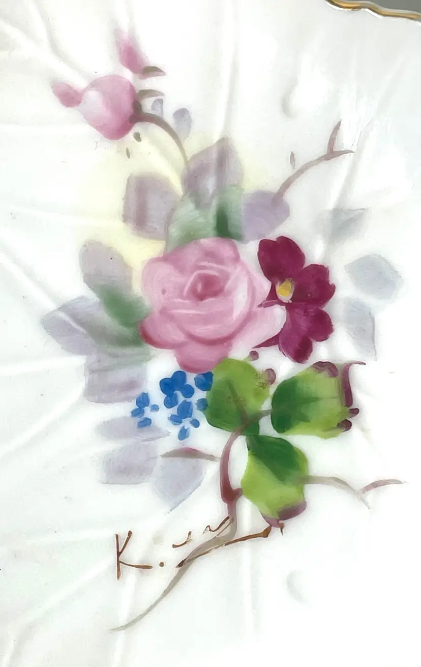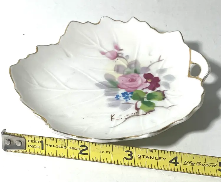 Lovey small trinket dish. Would also look nice with some small soaps in guest bathroom. No chips or cracks. Hand painted in Japan