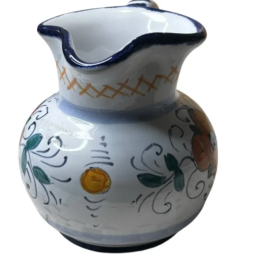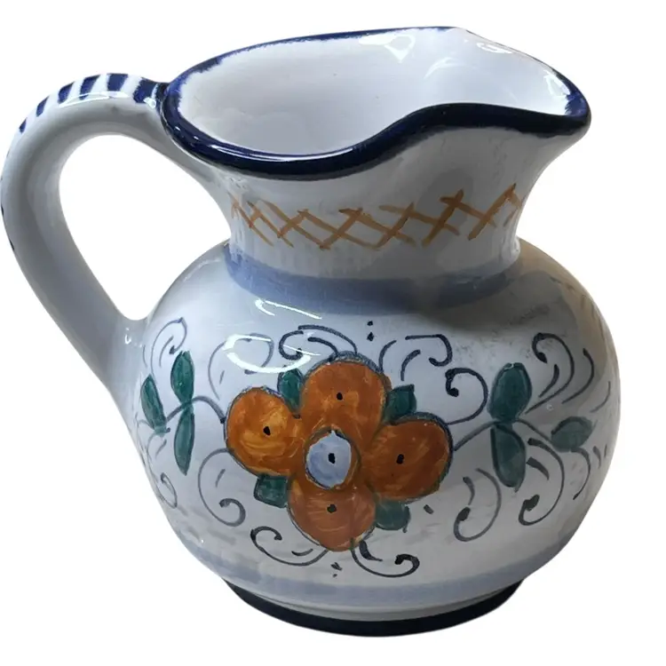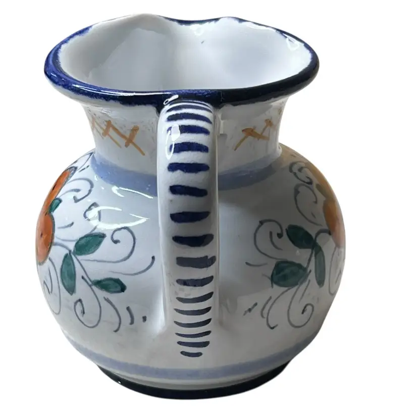 037 Small Italian Pottery Artist Signed Picture Creamer Match Holder Terra-Cotta Clay 3.5" X 4"