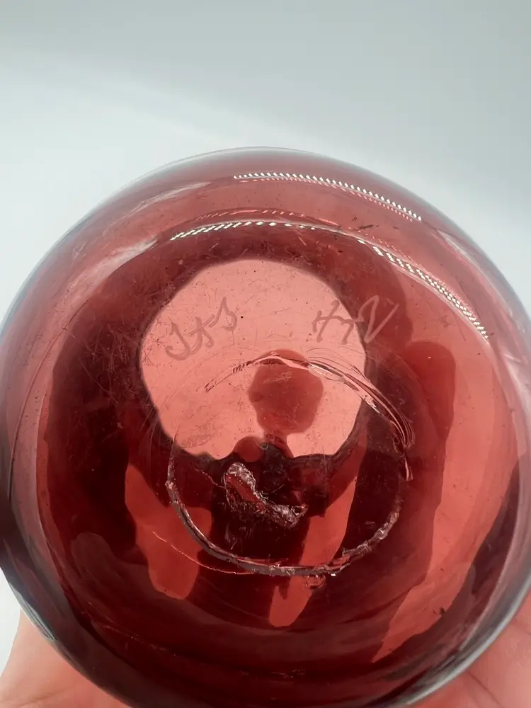 About 3.5” tall and 3” wide. Signature is etched in bottom. No chips or cracks.