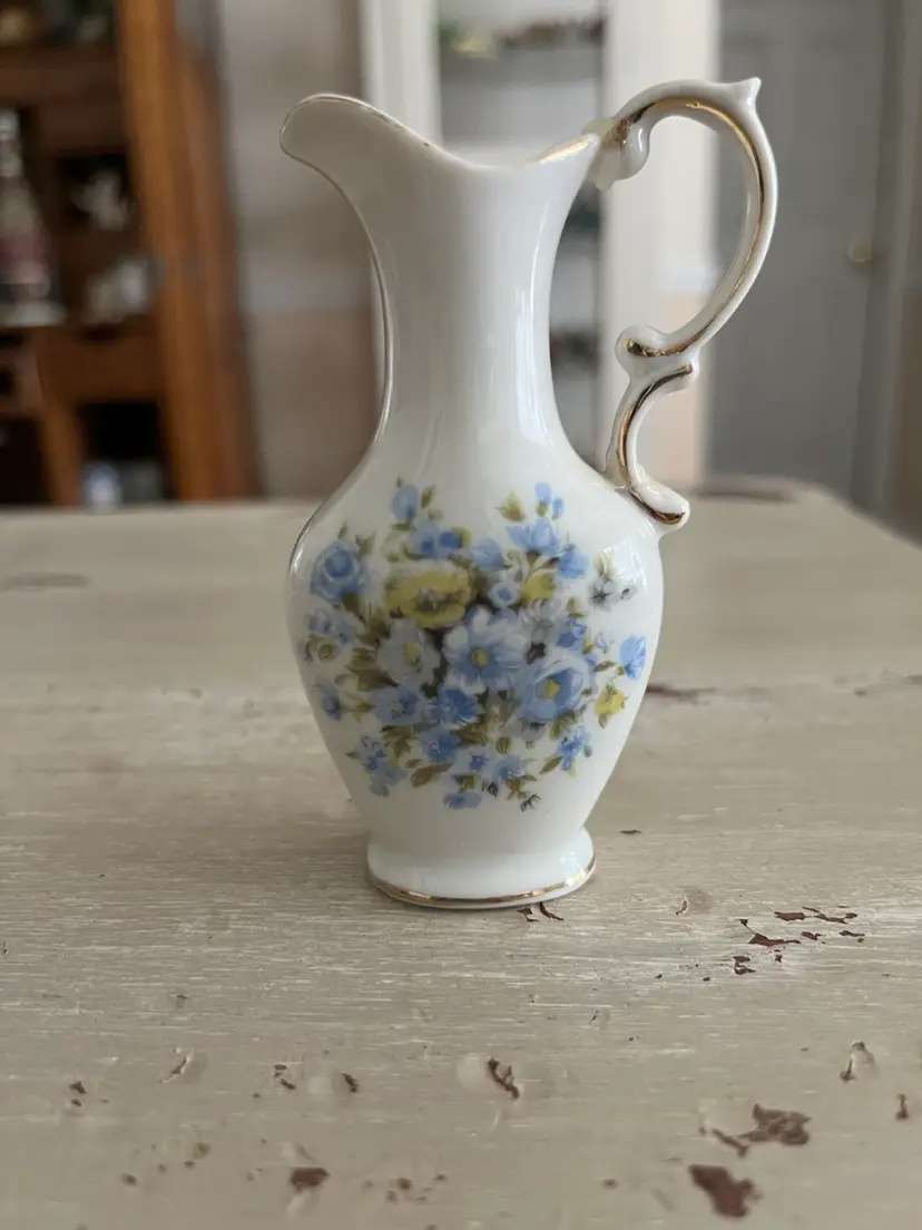 Very small porcelain jug made in Japan. No chips or cracks 1.7 oz 3.5 x 2