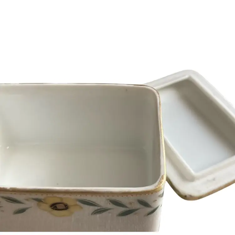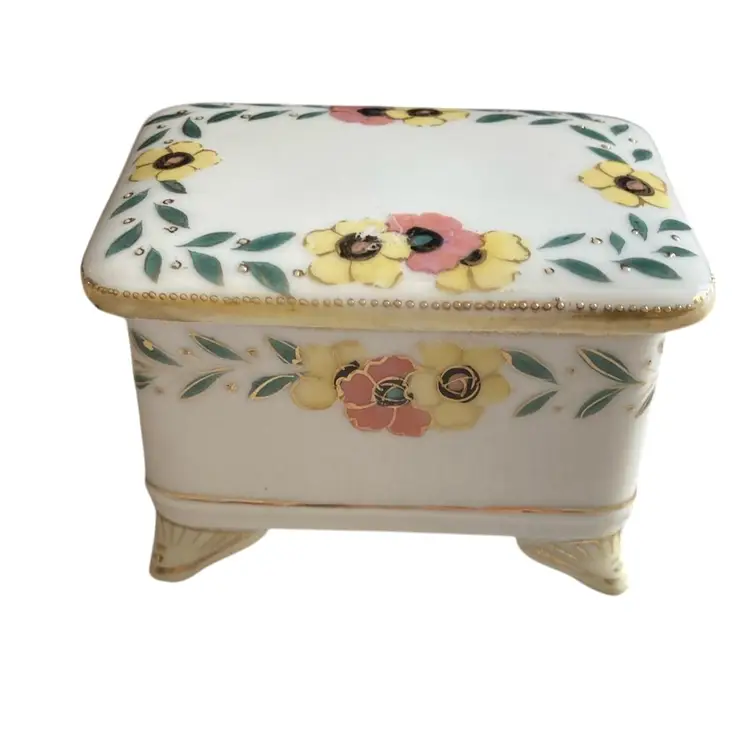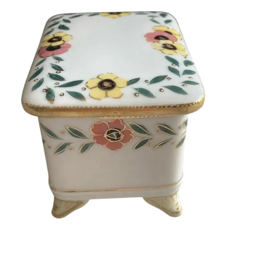2.75 x 2,25” x 2” rectangular trinket box with feet and painted flowers