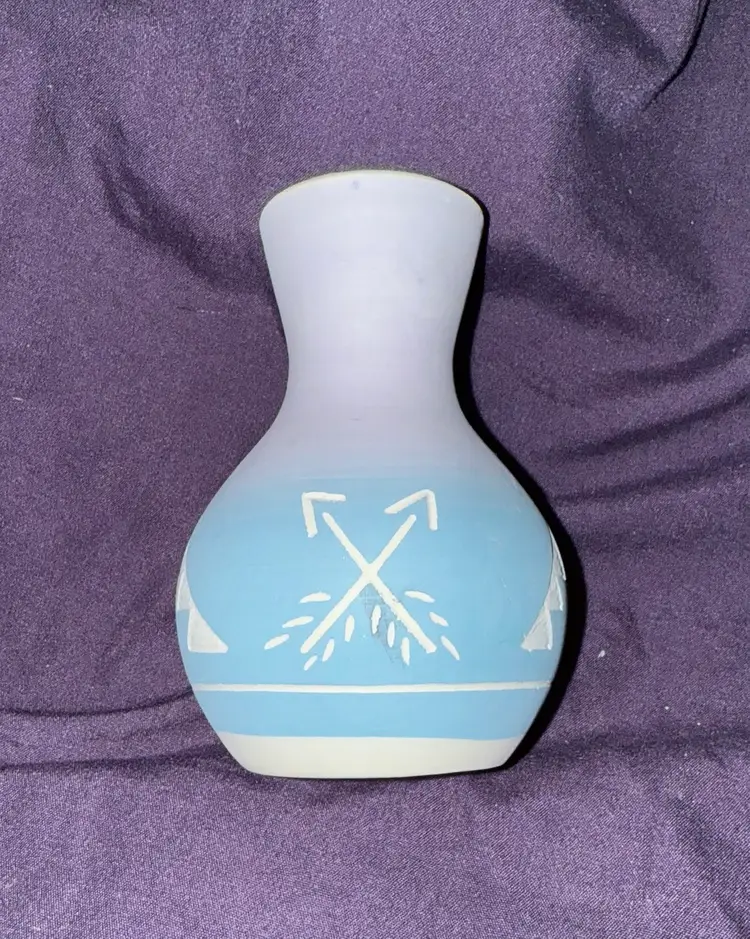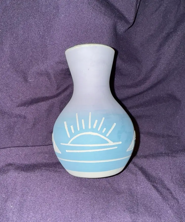 Pretty handmade signed Sioux pottery vase. No chips or cracks. 4” H x 2.5” W