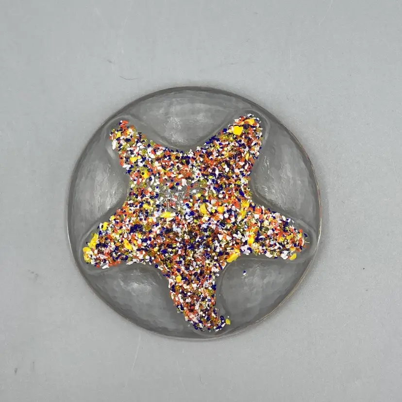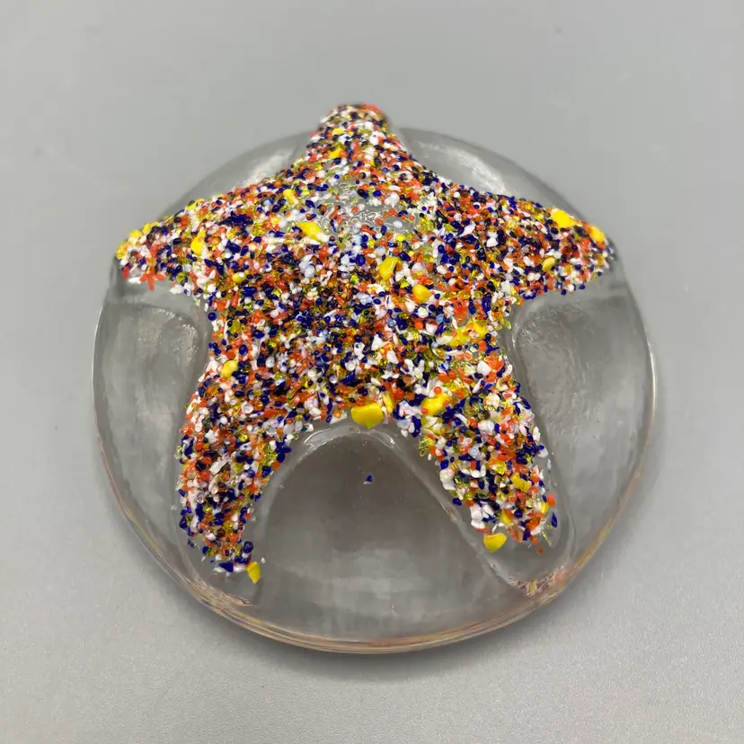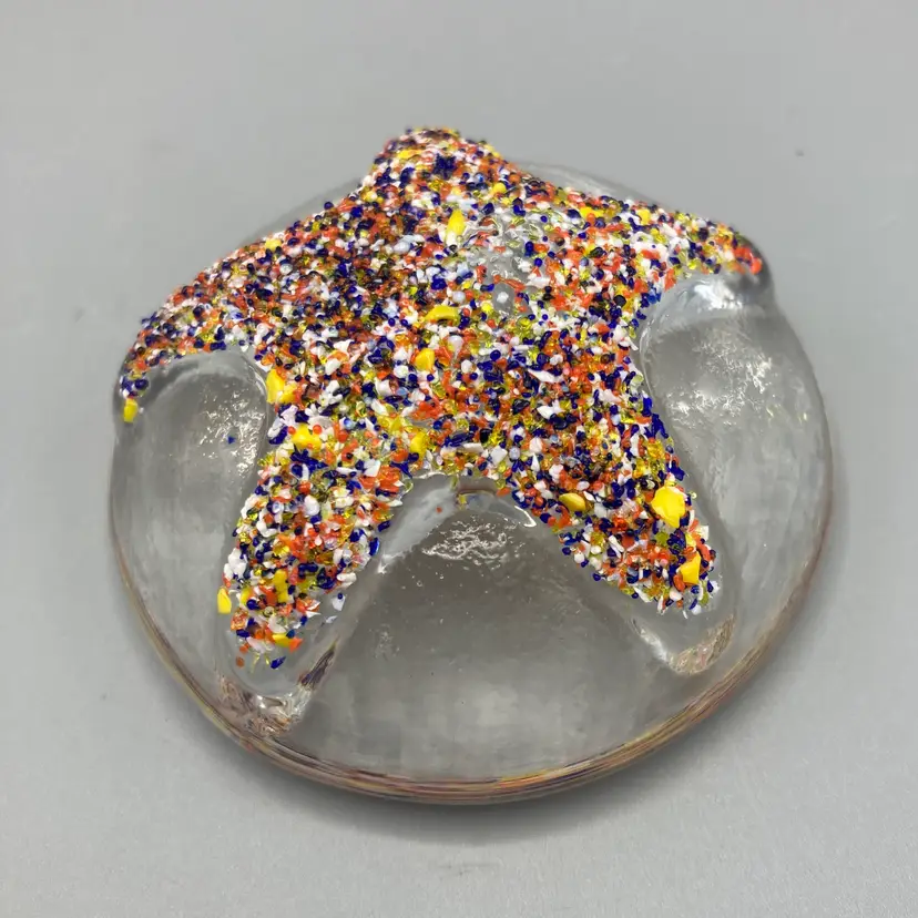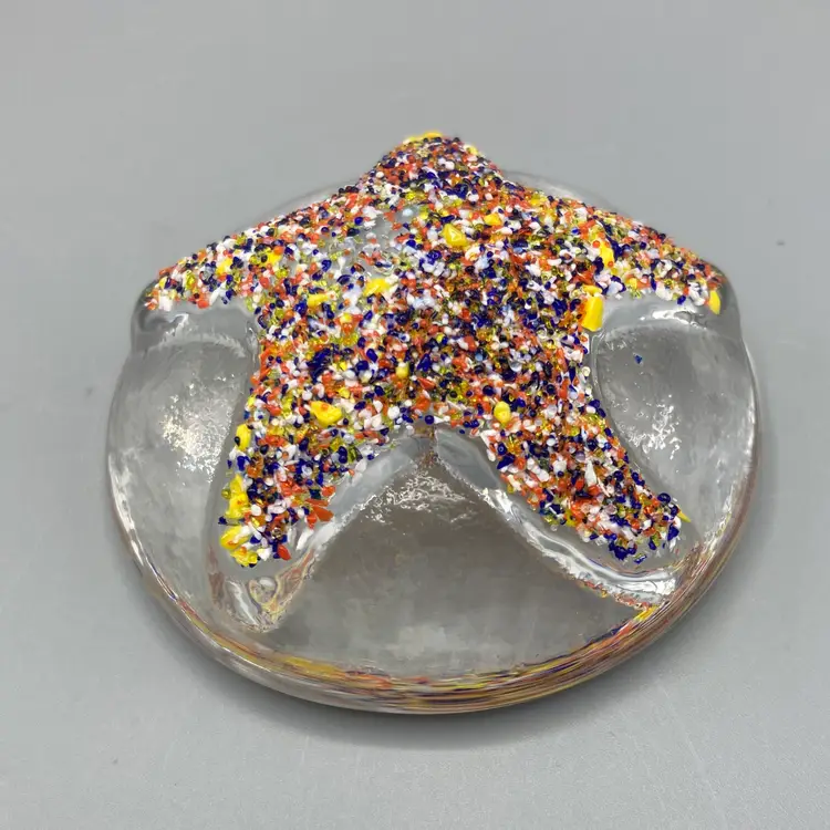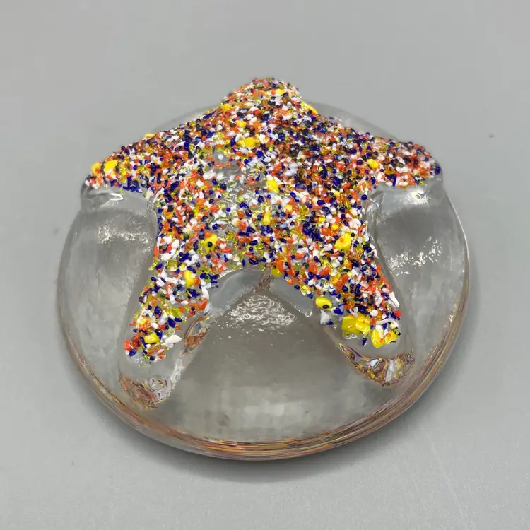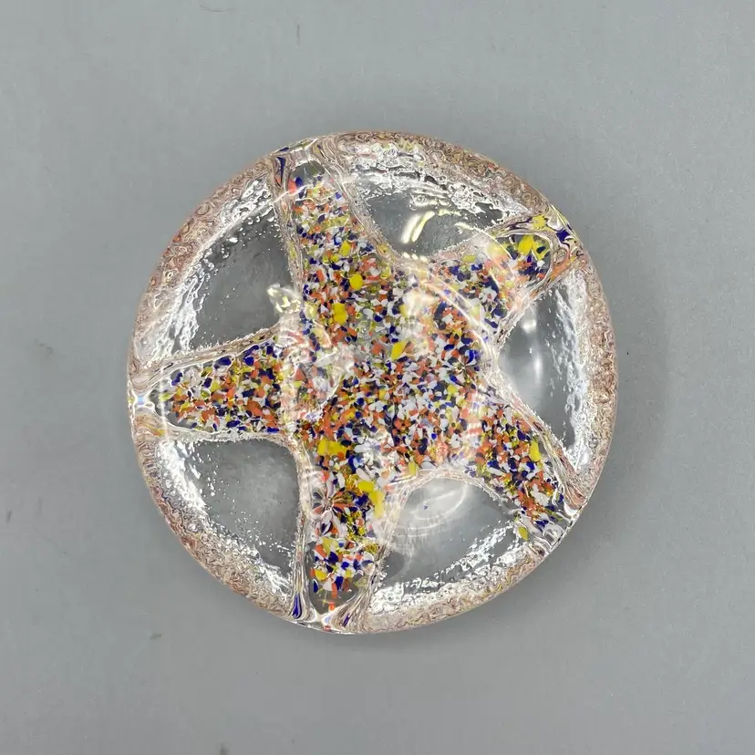 This paperweight is in good condition. It measures approximately 2 2/4" across x 1 1/4" tall.