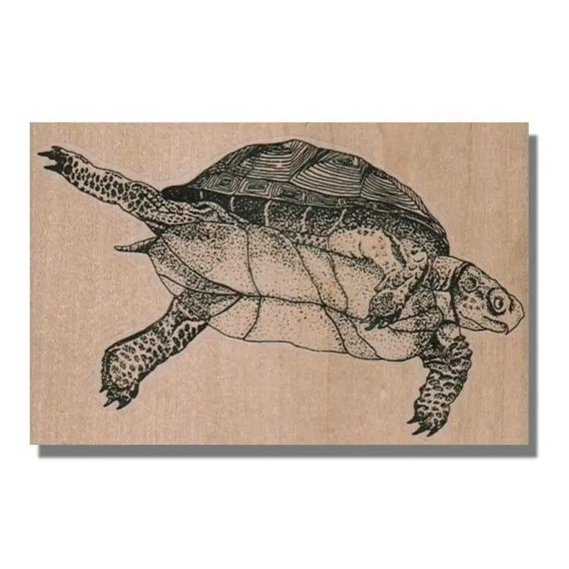 Small Swimming Turtle Rubber Stamp Wood mounted Red Rubber Size: 2-3/4 x 1-3/4 inches Brand new/unused • Great for junk journals, mixed media projects, collage, card making and tags. • First purchase on District? Use this code for $5 off a $10 min purchase. ALOHAG34