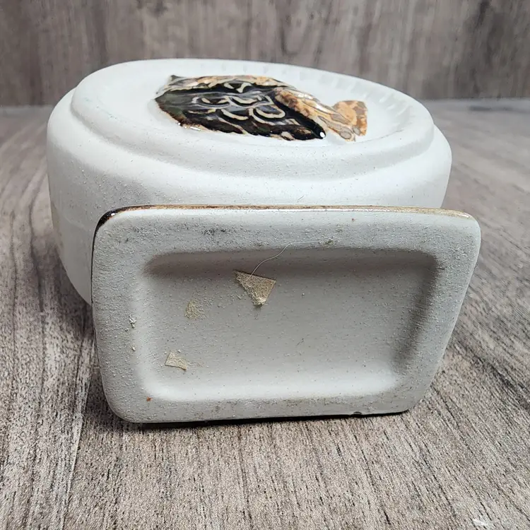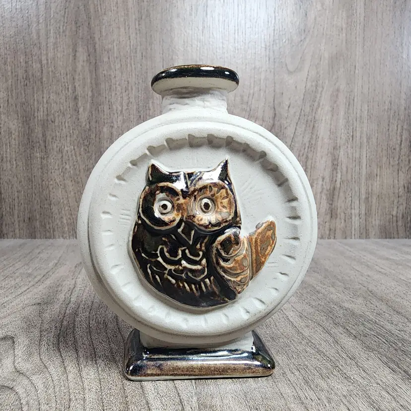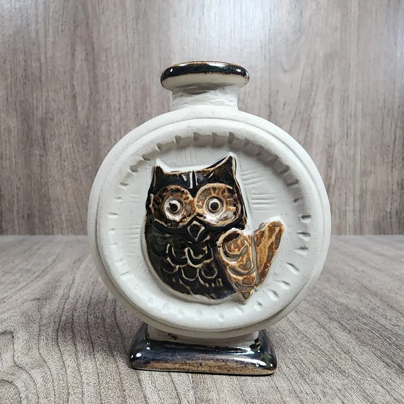 Vase? Just a shelf sitter? Either way this is adorable with an adorable owl on both sides! No markings. No chips or cracks. Measures approximately 4.5" tall.