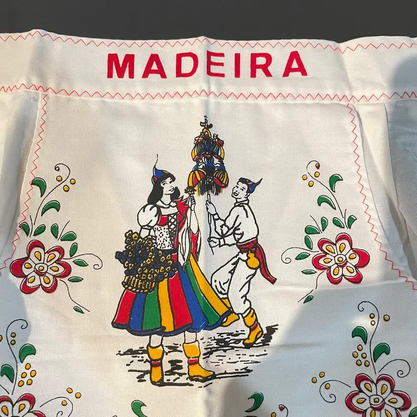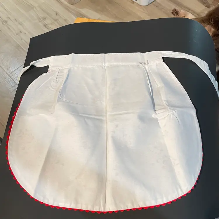 Apron front is 18” across with pockets and 16” long. 44” across with apron strings (tie).