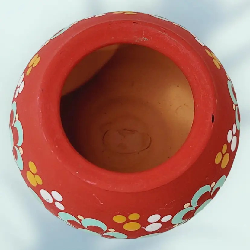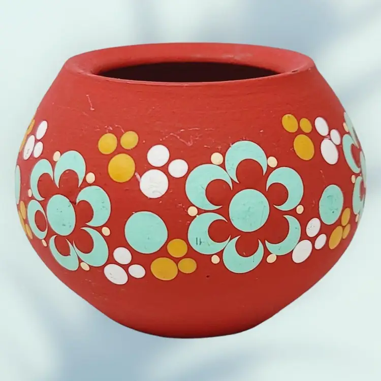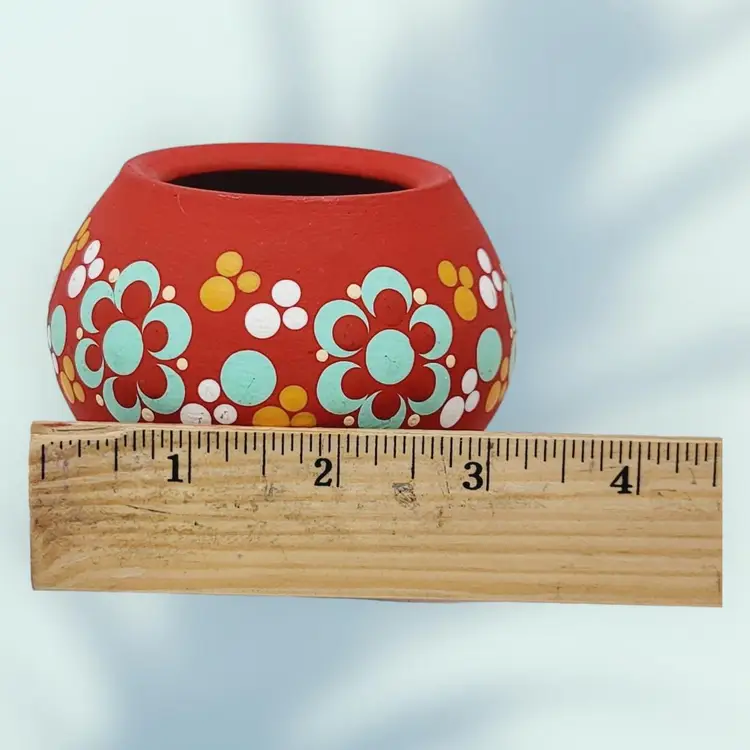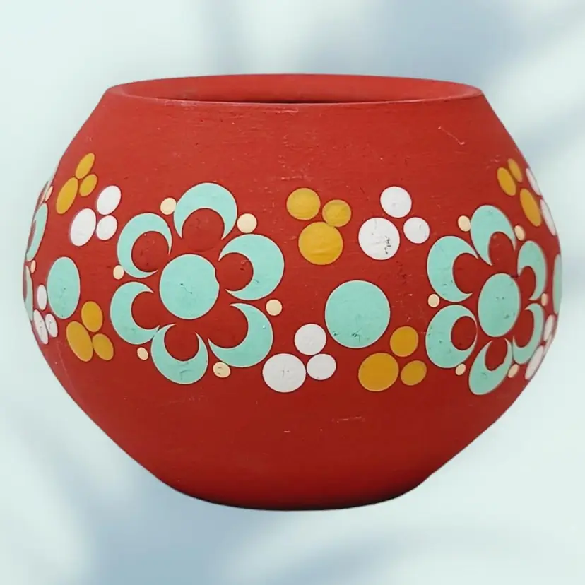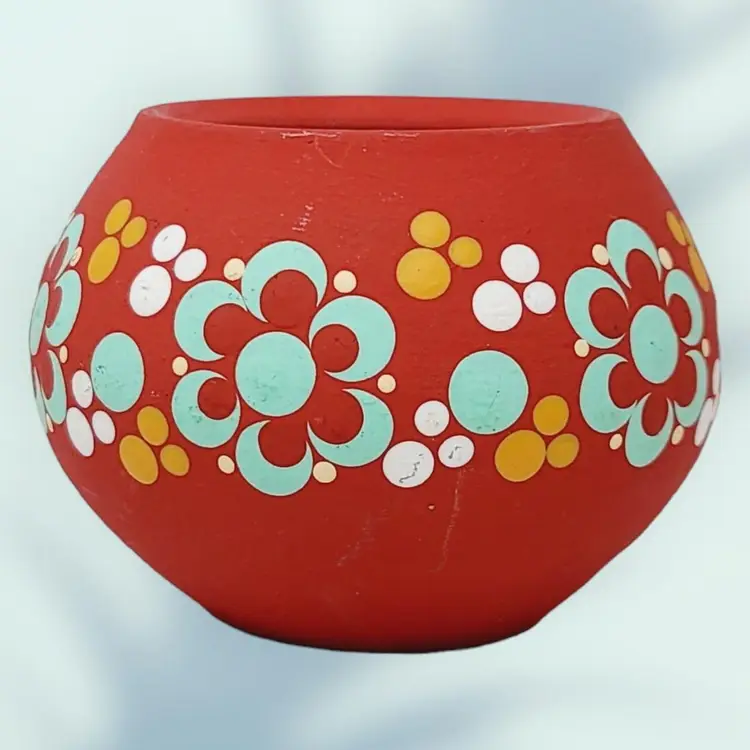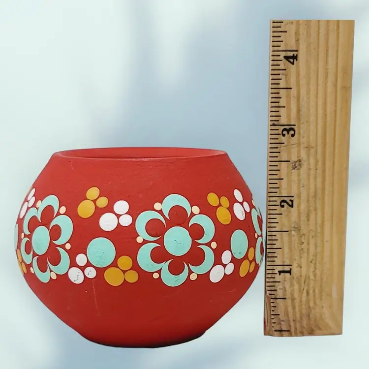 Small Vintage Ceramic Candle Holder Hand Painted Flowers 2.5" tall 3.5" wide