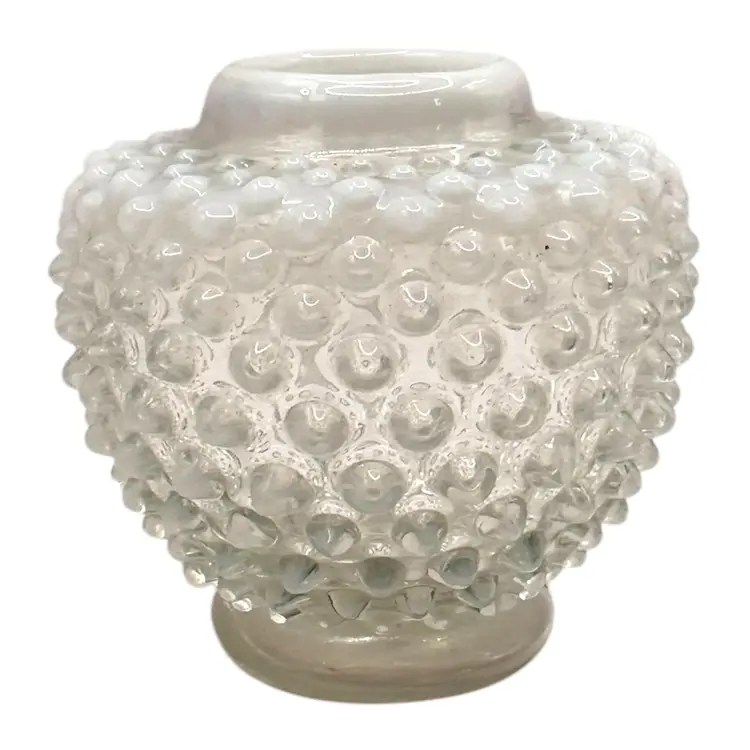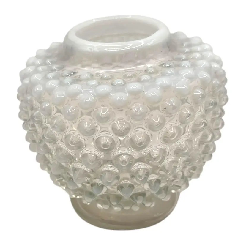 Charming vintage Fenton hobnail opalescent glass vase with a classic urn shape. Was most likely a ginger jar but there is no lid. Perfect for adding a touch of retro elegance to your home decor. In excellent condition with no chips or cracks. 4.5" tall.