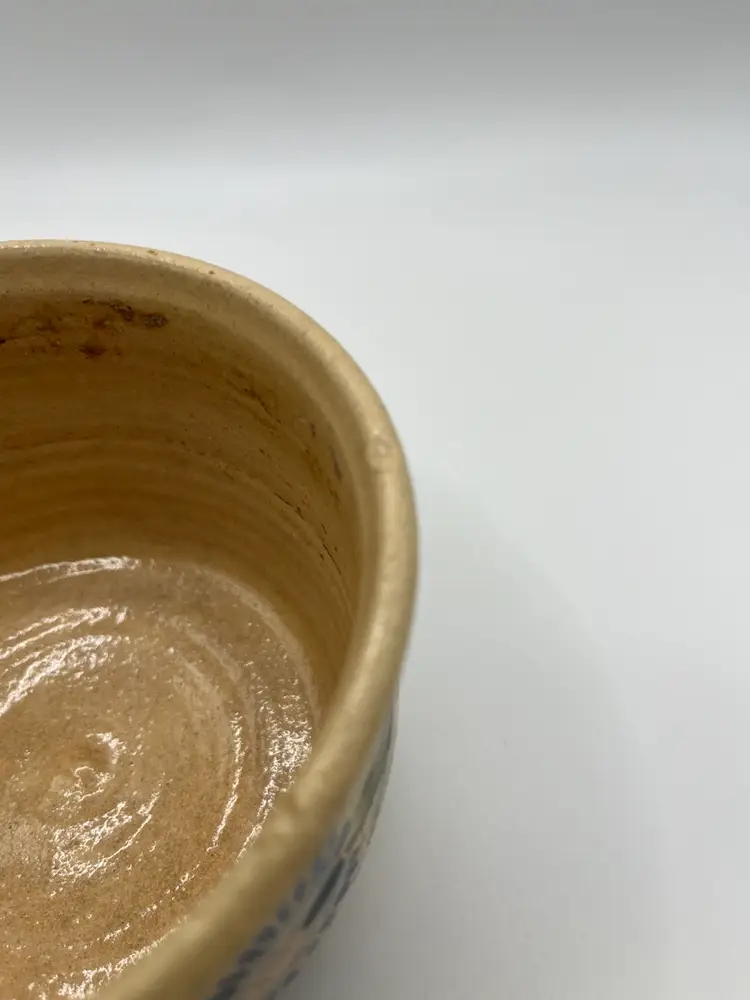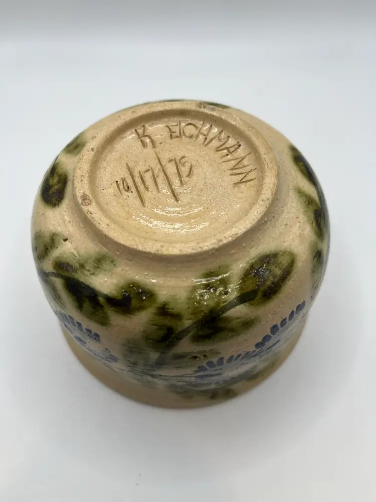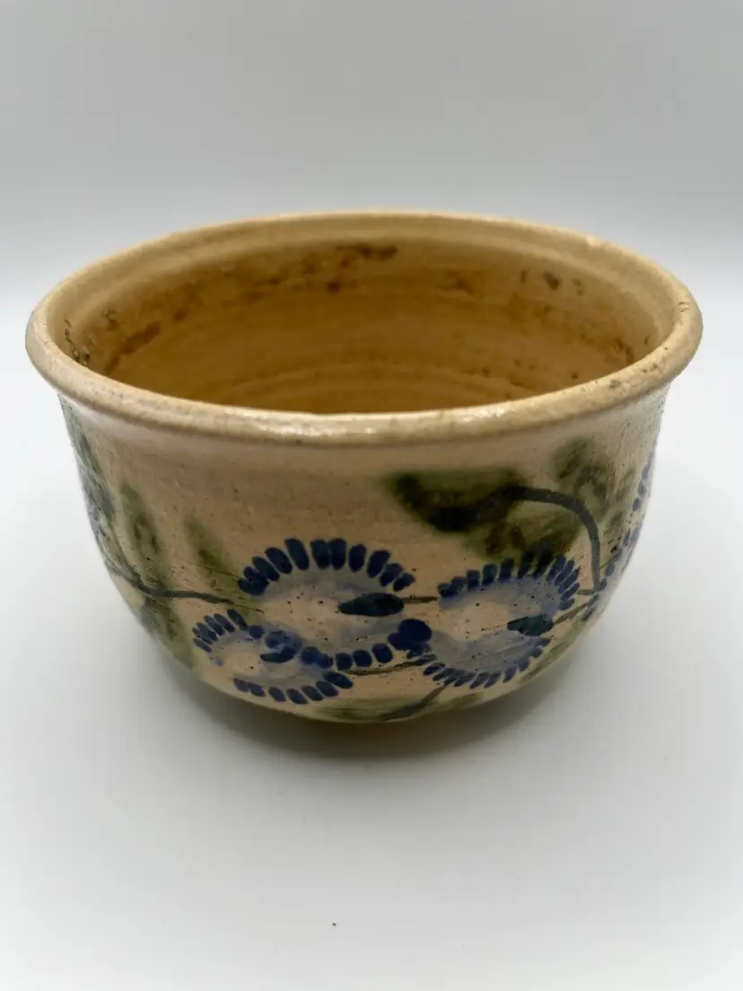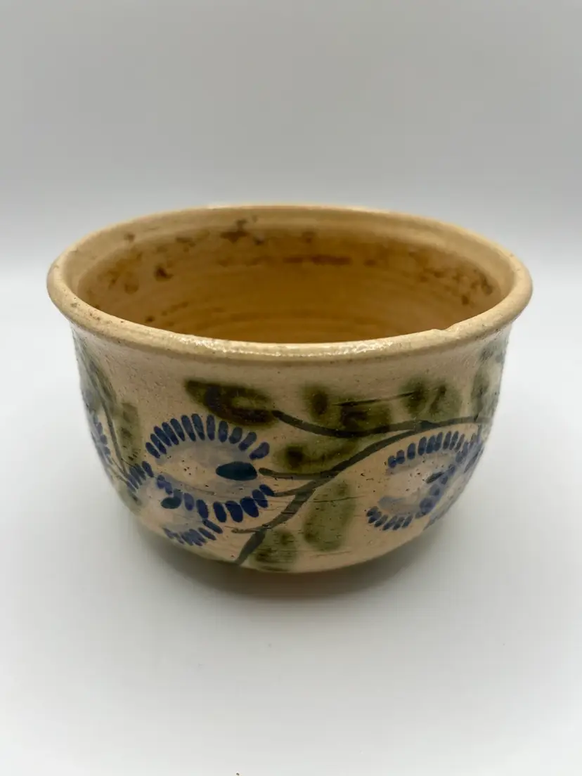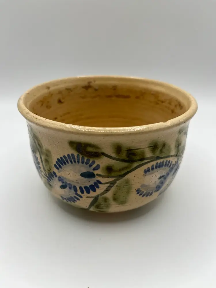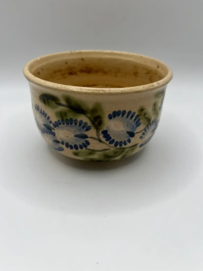Pretty vintage pottery bowl with floral design. Signed and dated. No chips or cracks. Small makers defect as seen in picture. 4 3/4” across top 3” height