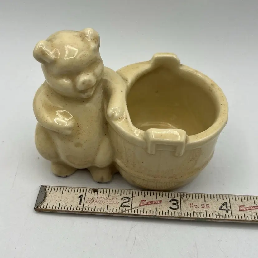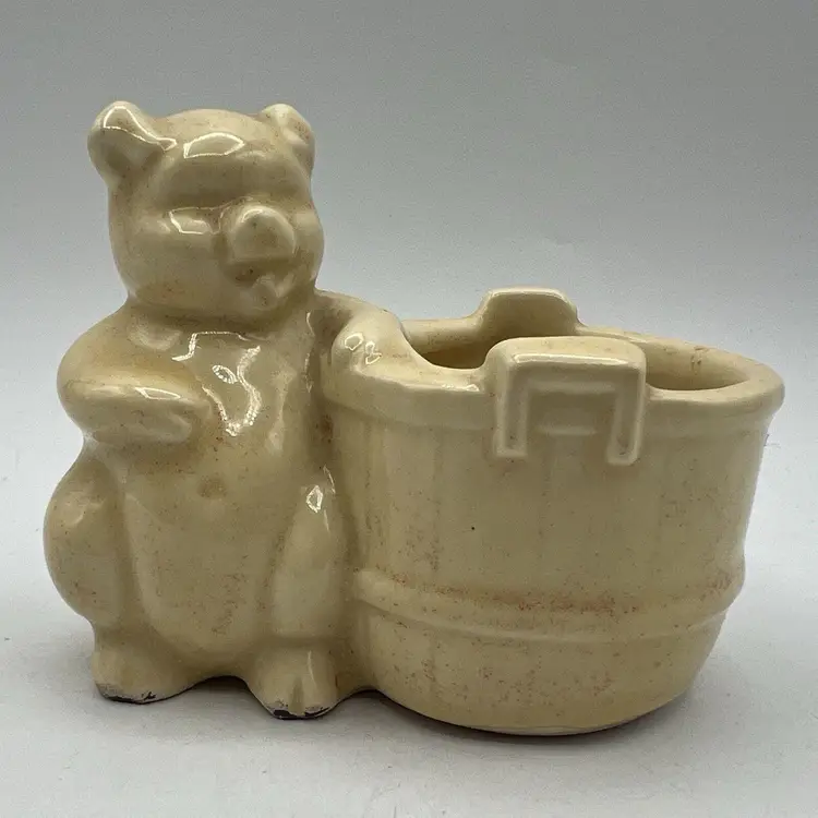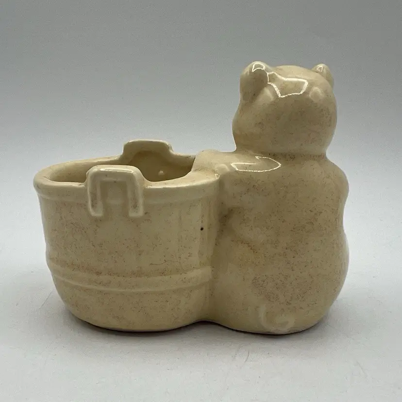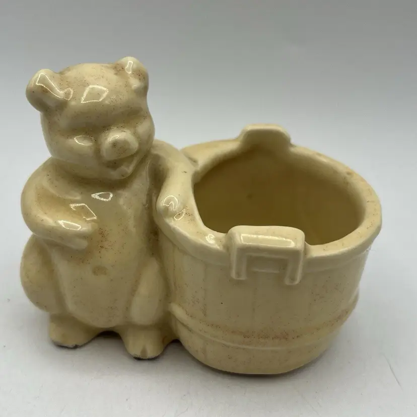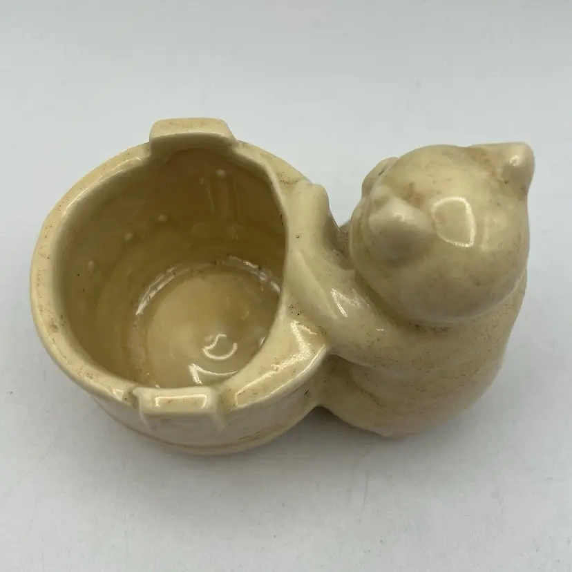 Small Vintage Yellow USA Pottery Pic Barrel Planter Pencil Holder 4" Bathroom