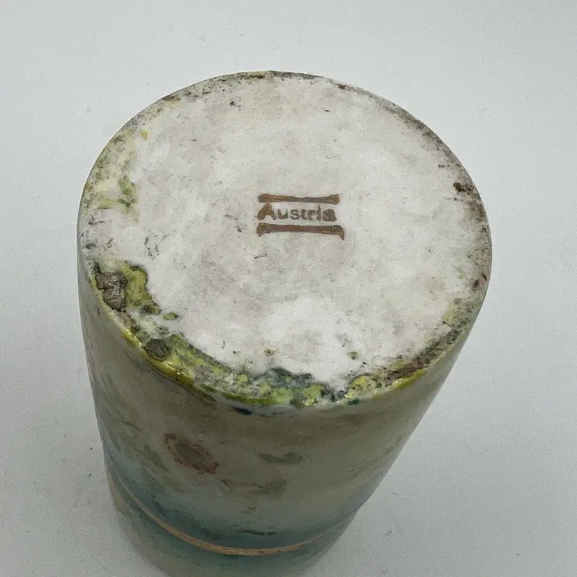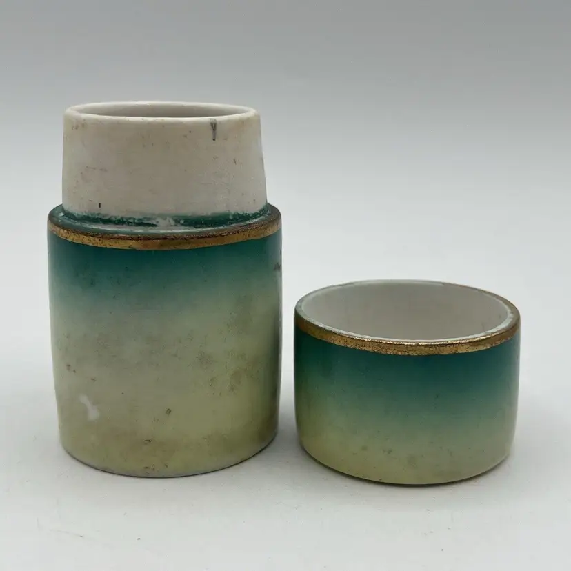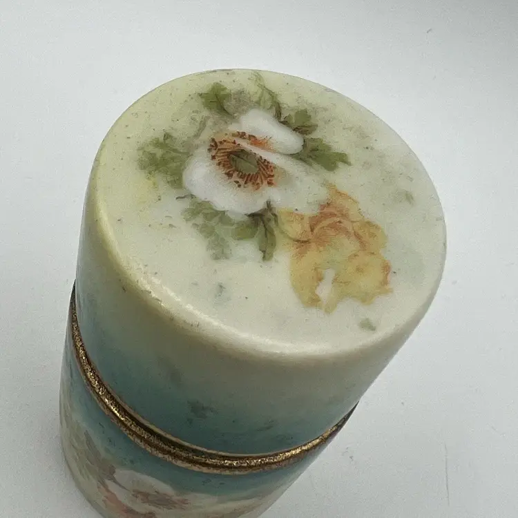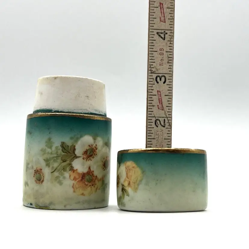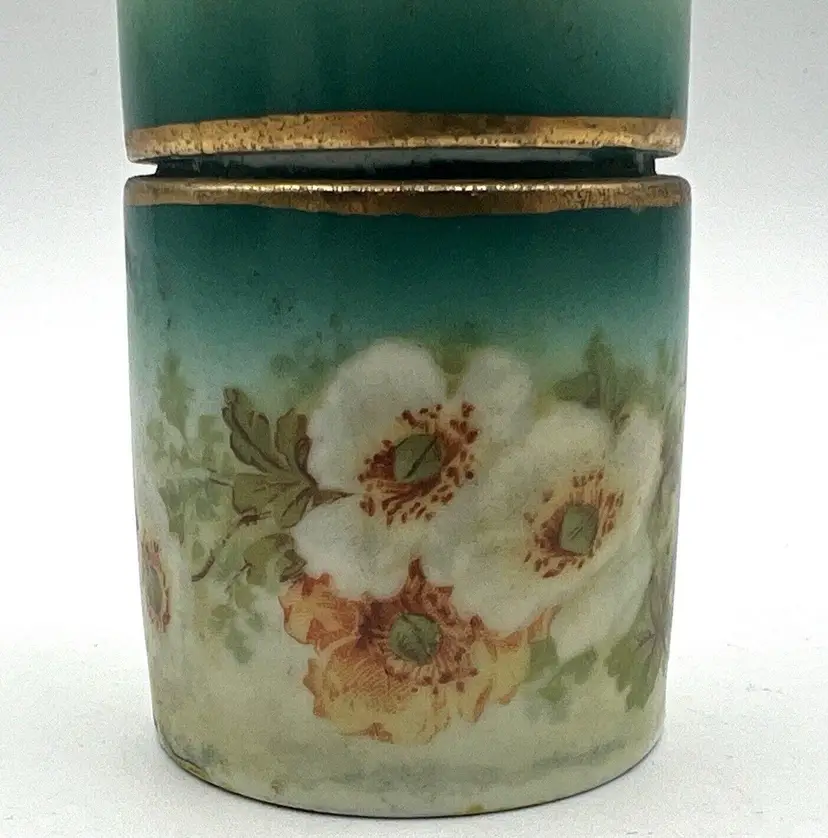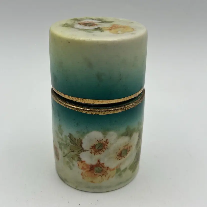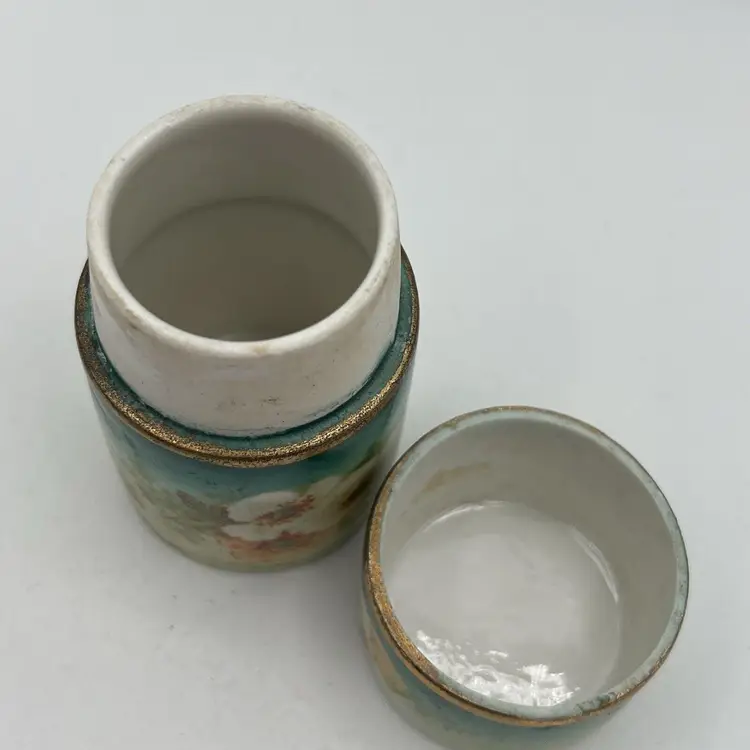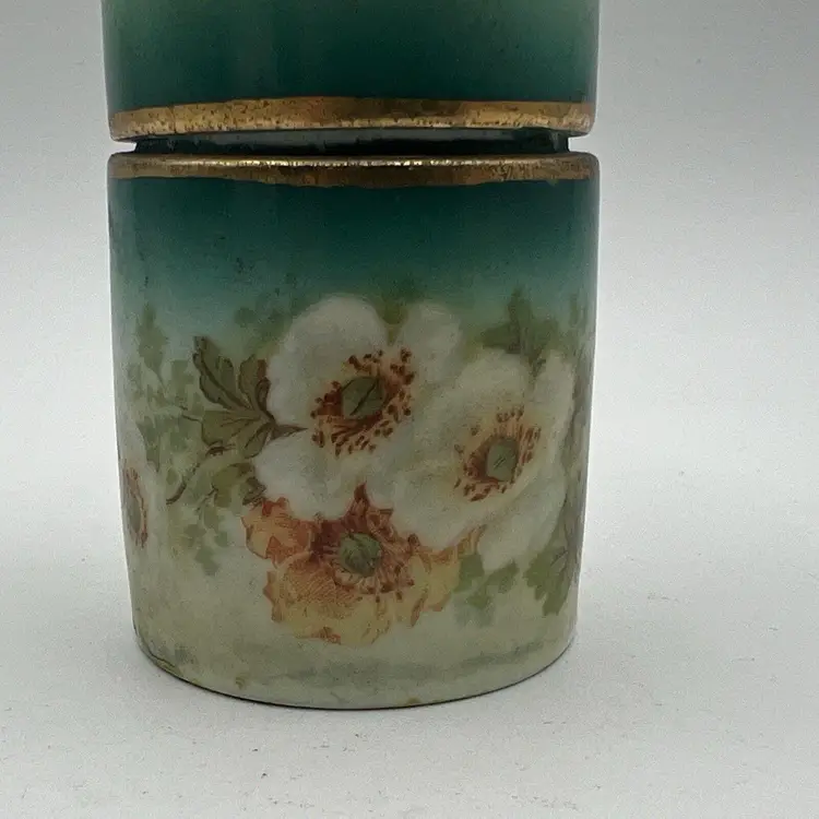 Small Vtg Austrian Porcelain Vanity Jar Cigarette Holder Canister Green Flowers