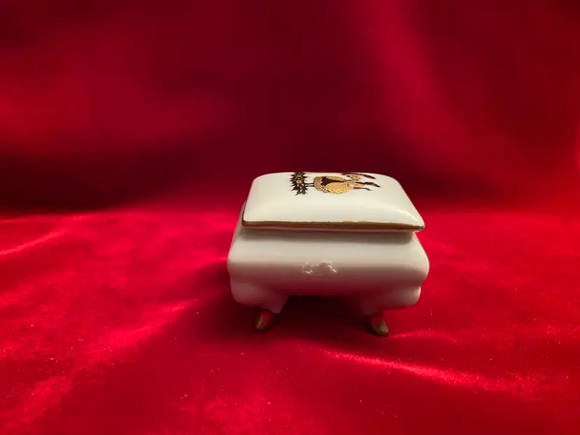 White porcelain trigger box has Victorian style people lived made in Japan