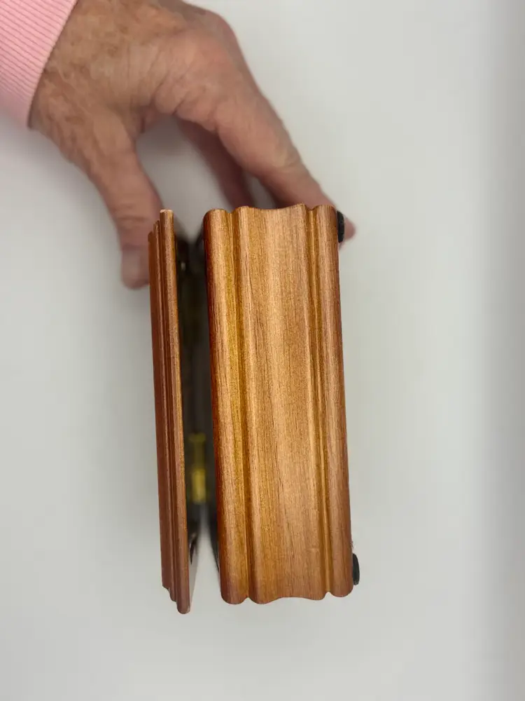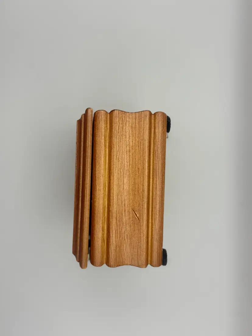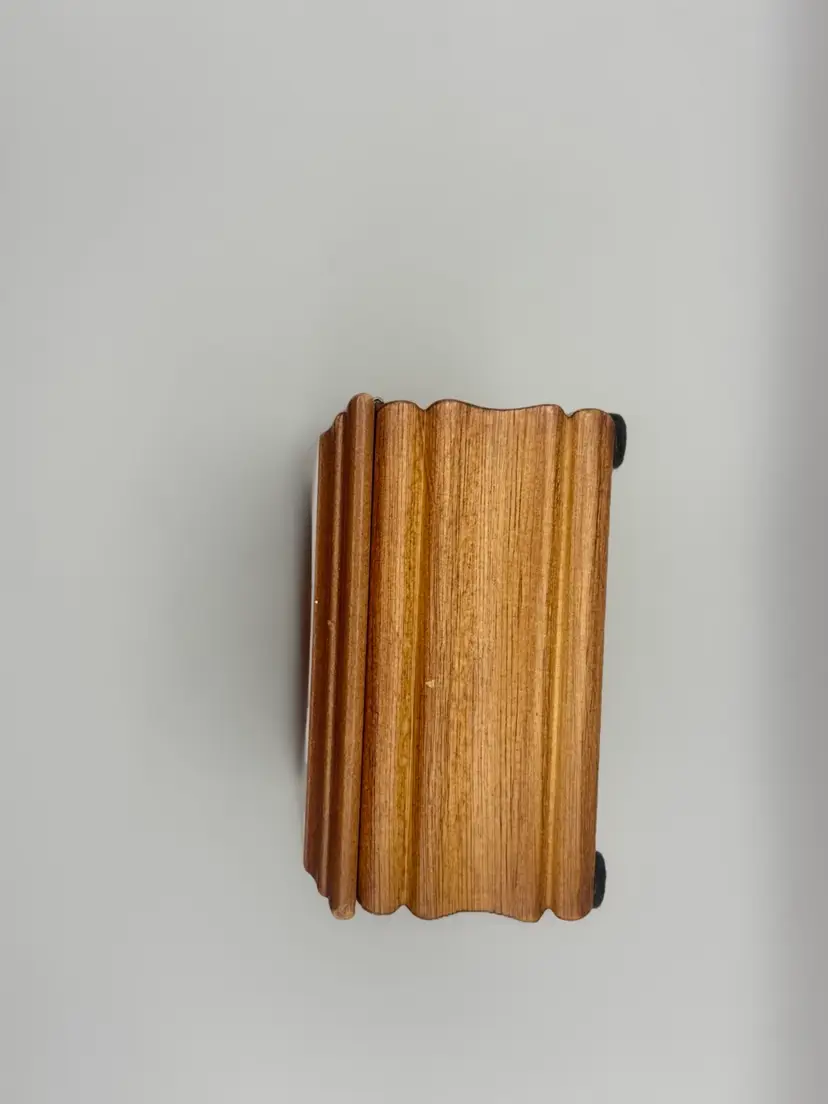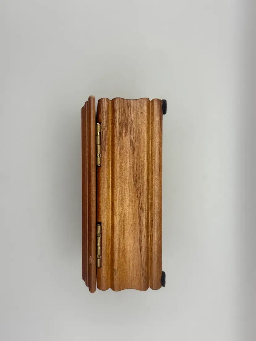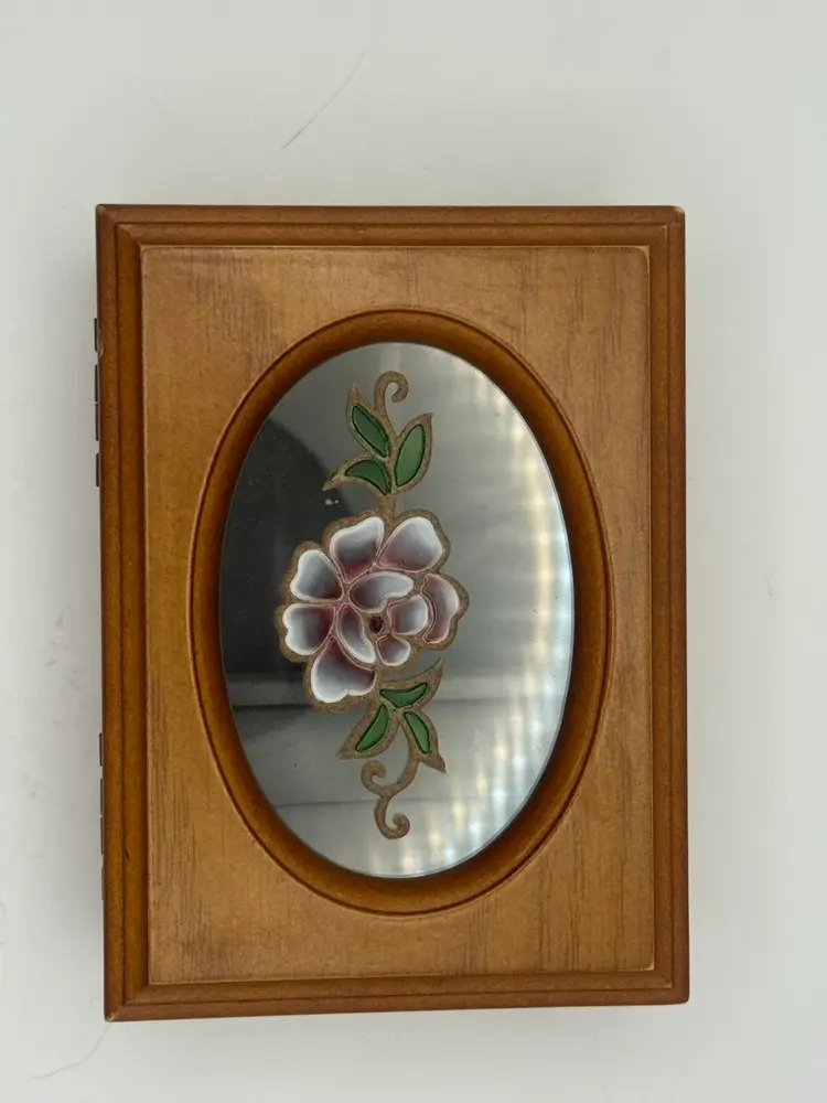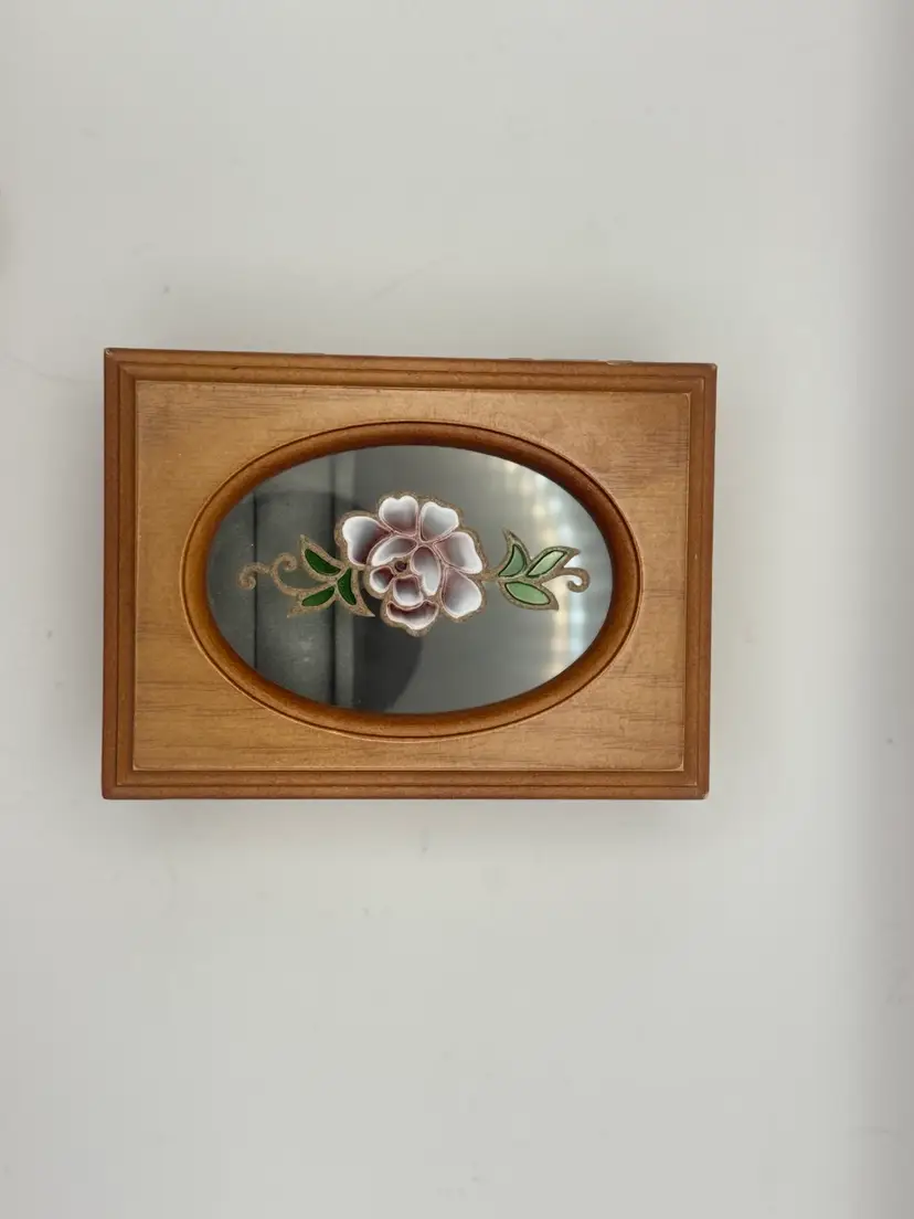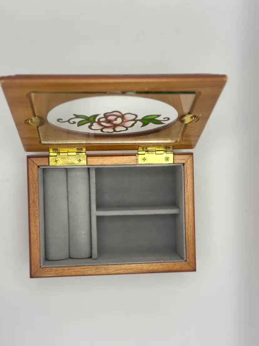Small Wooden Jewelry Box With Etched Flower On Glass Lid - 2”x5”