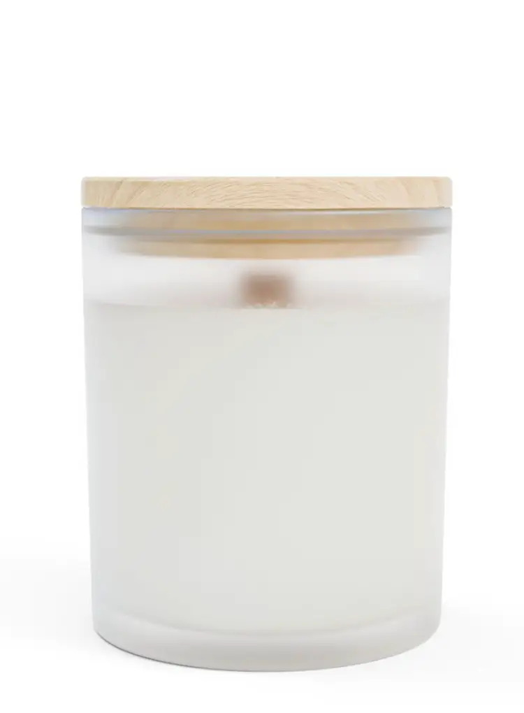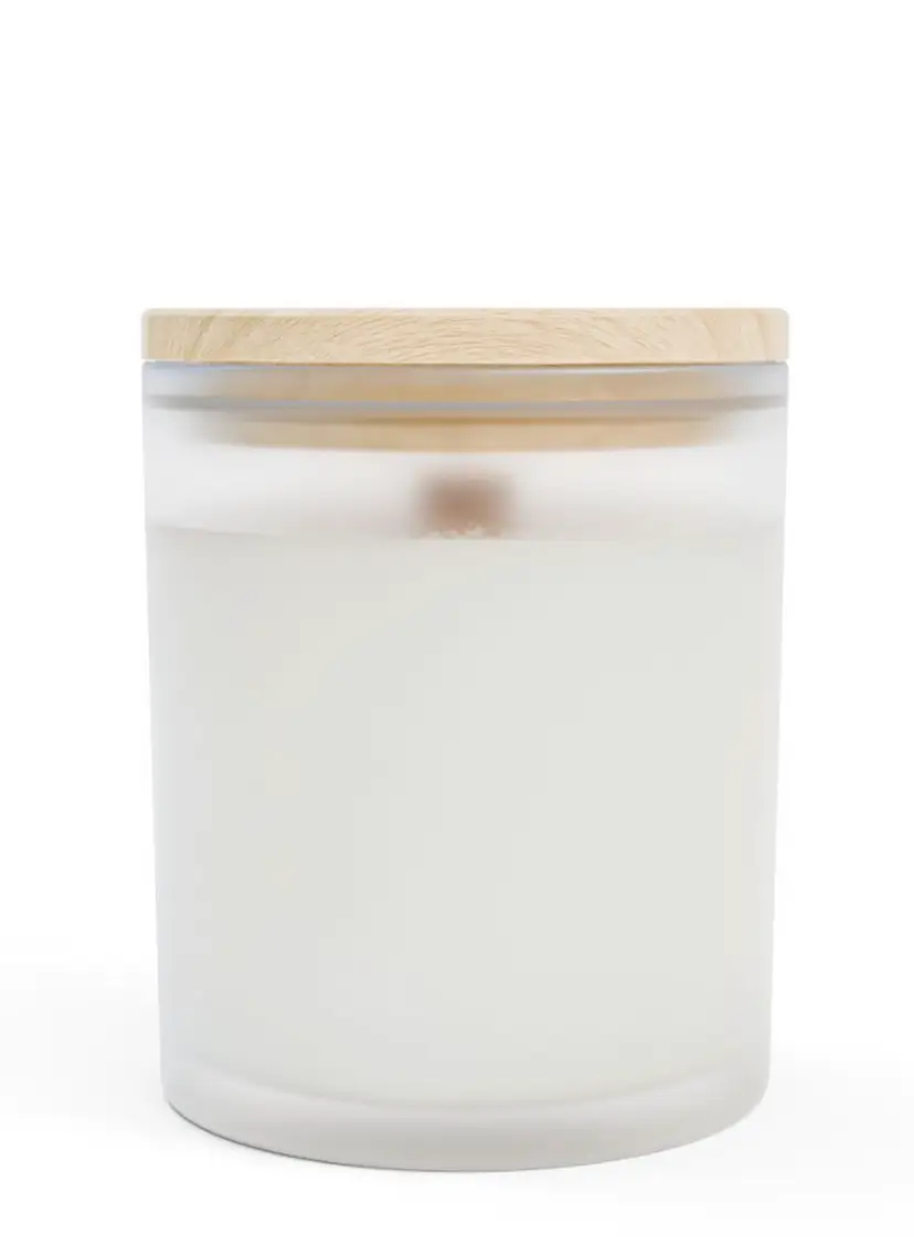 Illuminate your home with the enchanting glow of this 11oz Frost Candle, featuring a unique wooden wick that crackles gently as it burns. This exquisite candle is more than just a light source—it's an elegant piece of decor that adds a touch of beauty and lush scents to any room.