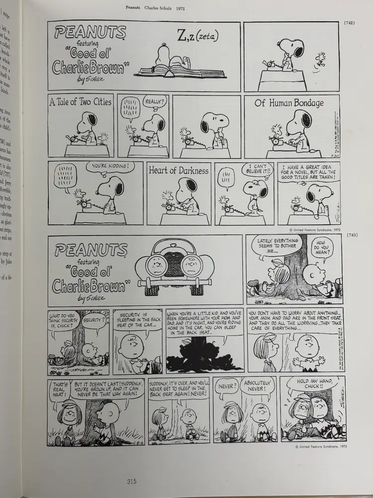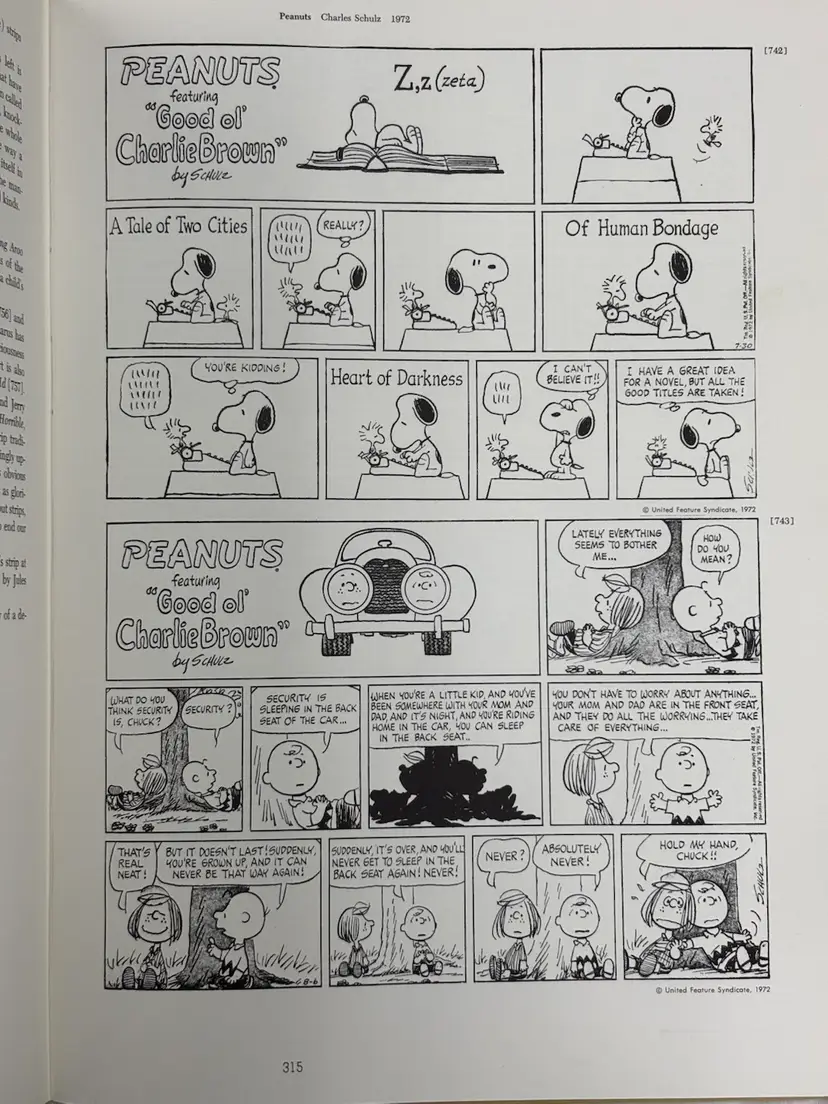 If you are interested in the history of newspaper comic strips, this is a must read. It’s an absolutely wonderful book full of information about the history of comics from the Yellow Kid to Peanuts. Please note, considering this is a Snoopy group, there is only one page of Peanuts comics because Peanuts is classified as a newer comic in this book. This is a book for someone who wants to learn more about what comics Charles Schulz read as a kid and see the bigger picture of where Peanuts fits into the wonderful world of newspaper comic strips.