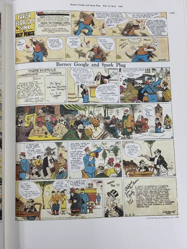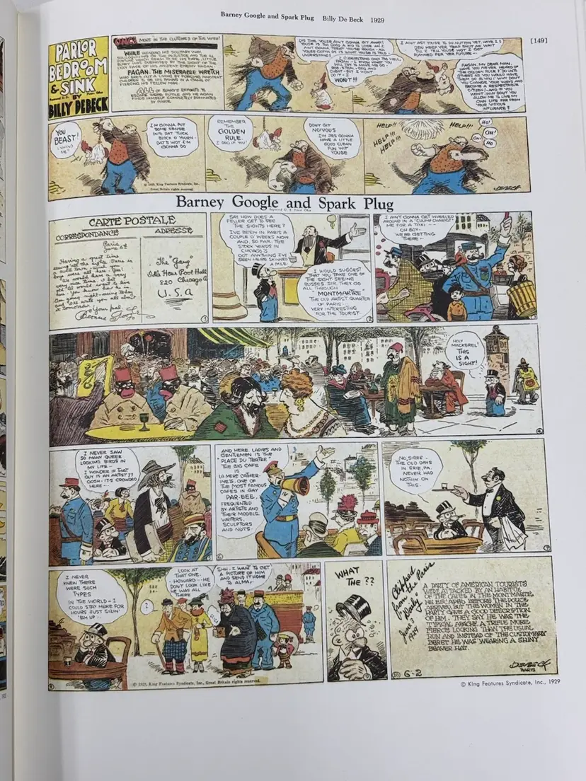It is a large hardcover book measuring approximately 14.5 x 10.25 inches. Originally published in 1977, with this being the seventh printing from 1988. Some of the pages are full color Sunday strips, and some are classic black and white dailies. Has some wear and discoloration on the cover as seen in the photos. Otherwise it is in very good condition. This is one of my favorite non-Peanuts books in my collection. Only selling because I have upgraded to one with a dust jacket. This would be a great addition to any collection or just to read for fun.