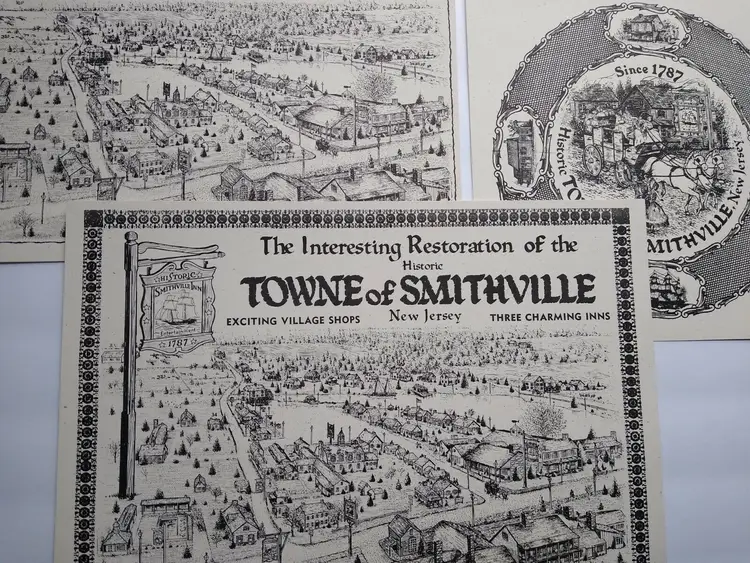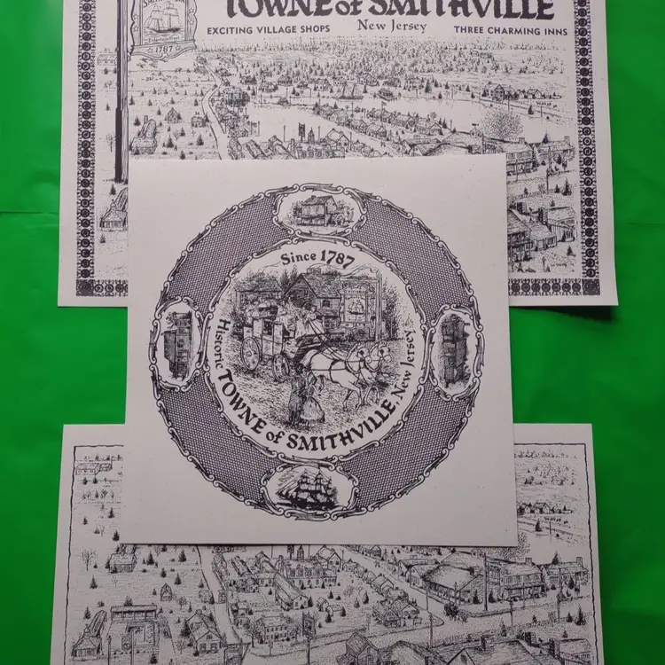 This beautiful art print set features three stunning prints showcasing the historic village of Smithville in New Jersey. The prints are each printed on high-quality paper and depict various scenes from the charming town. The set would make a great addition to any collection of collectibles or even as a gift for someone who loves New Jersey or historic places. The prints have been carefully crafted to capture the essence of Smithville and its unique history. The seller is located in the United States and the prints have not been modified in any way. Add this amazing set to your collection today and enjoy the beauty of Smithville in your own home.