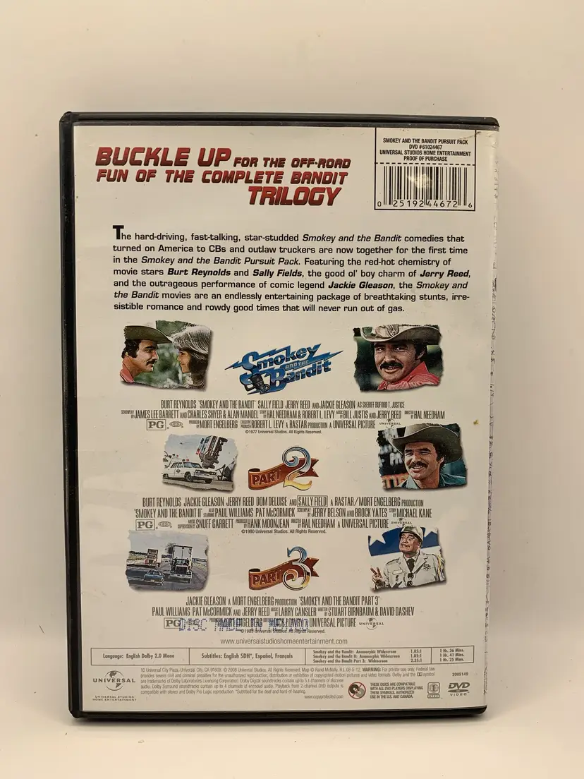 All three films from the Smokey and the Bandit trilogy - including Smokey and the Bandit Smokey and the Bandit 2 and Smokey and the Bandit 3 - come together on DVD in this special box set. All three films are presented in letterboxed format at their original widescreen aspect ratios and enhanced for anamorphic playback on 16 x 9 monitors - the first two films at the ratio of 1.85:1 the third in 2.35:1. The audio for all three films in is Dolby Digital Mono; Smokey and the Bandit features its original English-language soundtrack alongside dubbed versions in French and Spanish while the second and third films appear in English only. The first film includes optional subtitles in Spanish while the second and third films are subtitled in English and French. All three films include their original theatrical trailer as a bonus while Smokey and the Bandit also includes production notes and biographies of the key cast and crew members.Size: Unisex OS