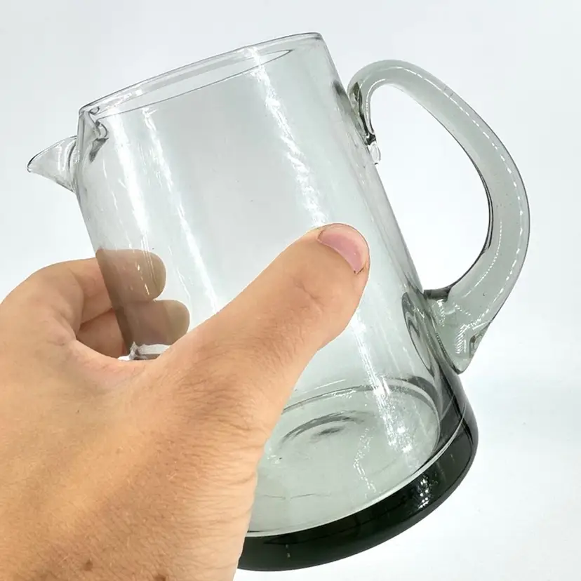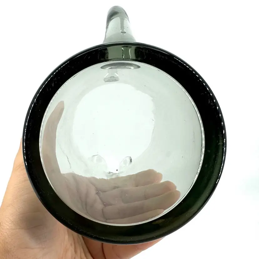 This Smokey glass creamer pitcher doesn’t have any chips or cracks. Also it is NOT have any signatures or markings on it. Does have some little scratches in the bottom.