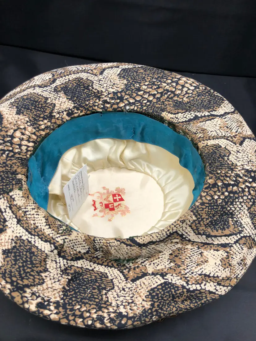 This striking headpiece showcases an eye-catching snake skin pattern accented with elegant feathers, making it an unmissable statement accessory. Designed for those who appreciate bold, distinctive style, the hat combines reptilian texture with refined embellishment. Measuring 12 x 7 inches, it delivers the perfect balance of presence and wearability for fashion-forward individuals seeking to elevate their ensemble.
