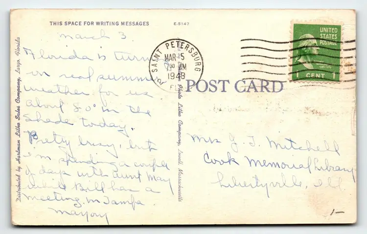 Number of Items in Set: 1 Unit of Sale: Single Unit Artist: Unknown Occasion: Sayings & Quotes Size: Standard (5.5 x 3.5 in) Signed: No Custom Bundle: No Year Manufactured: 1948 Material: Paper City: Miami Original/Licensed Reprint: Original Franchise: Does Not Apply Brand/Publisher: Photo Litho Subject: Bridges Continent: North America Type: Linen Postcard Era: Linen (1930-1945) Region: Florida Country: USA Theme: Cities & Towns, Greetings, Social History, Tourism, Palm Trees, Old Cars, Bridges Features: Divided Back Time Period Manufactured: 1950-1959 Country/Region of Manufacture: United States Postage Condition: Posted
